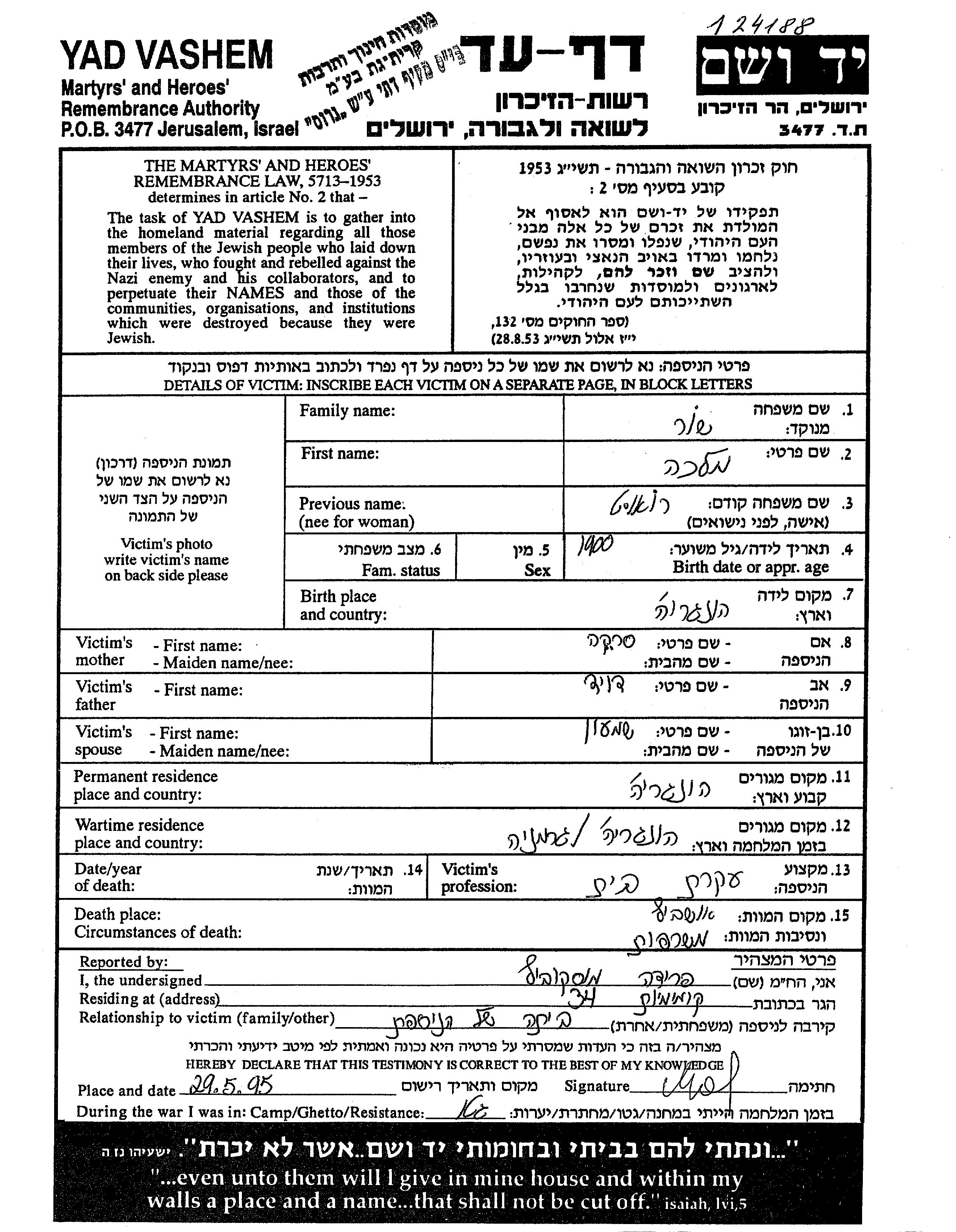 Yad Vashem - Pages of Testimony Names Memorial Collection