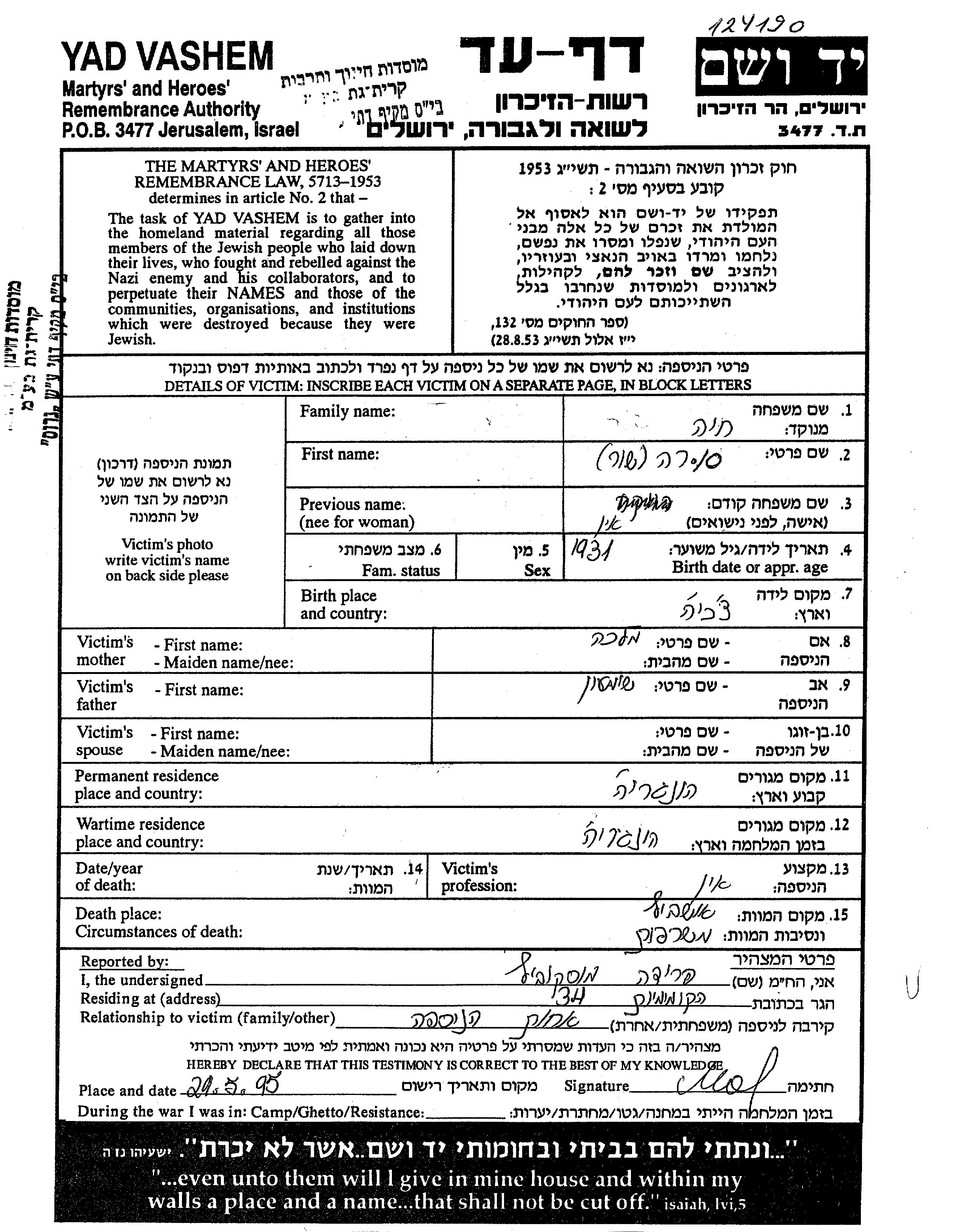 Yad Vashem - Pages of Testimony Names Memorial Collection