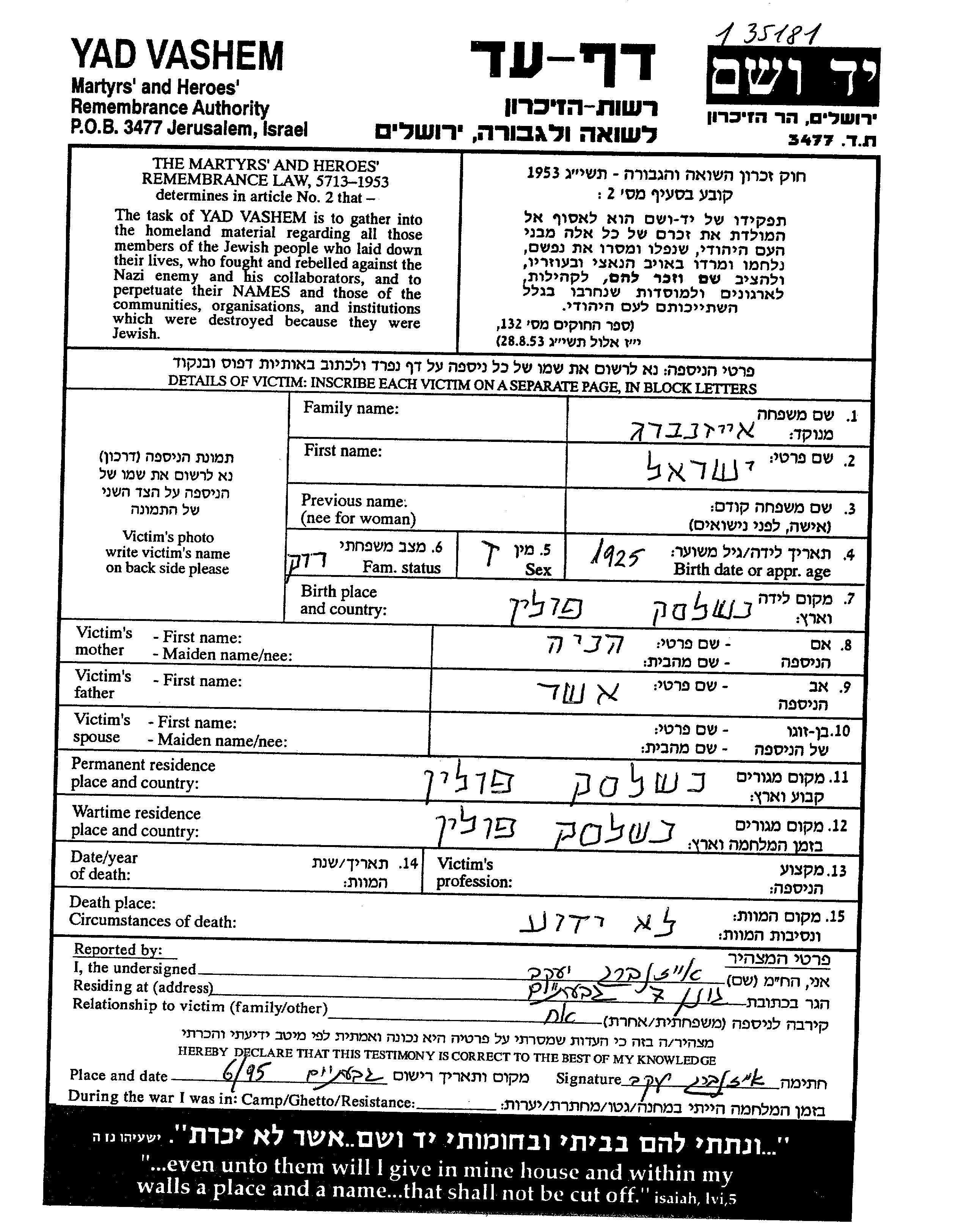 Yad Vashem - Pages of Testimony Names Memorial Collection