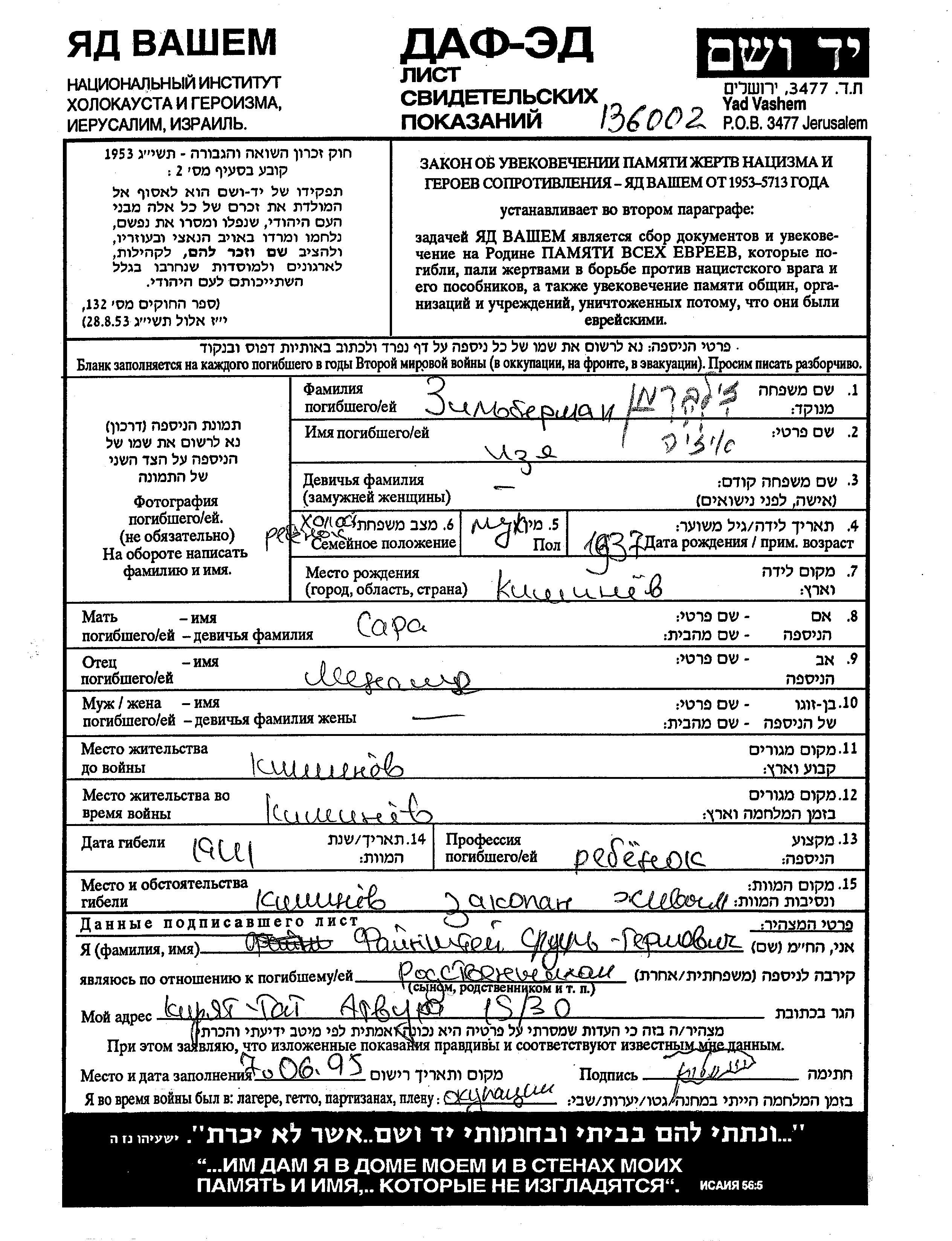 Yad Vashem - Pages of Testimony Names Memorial Collection