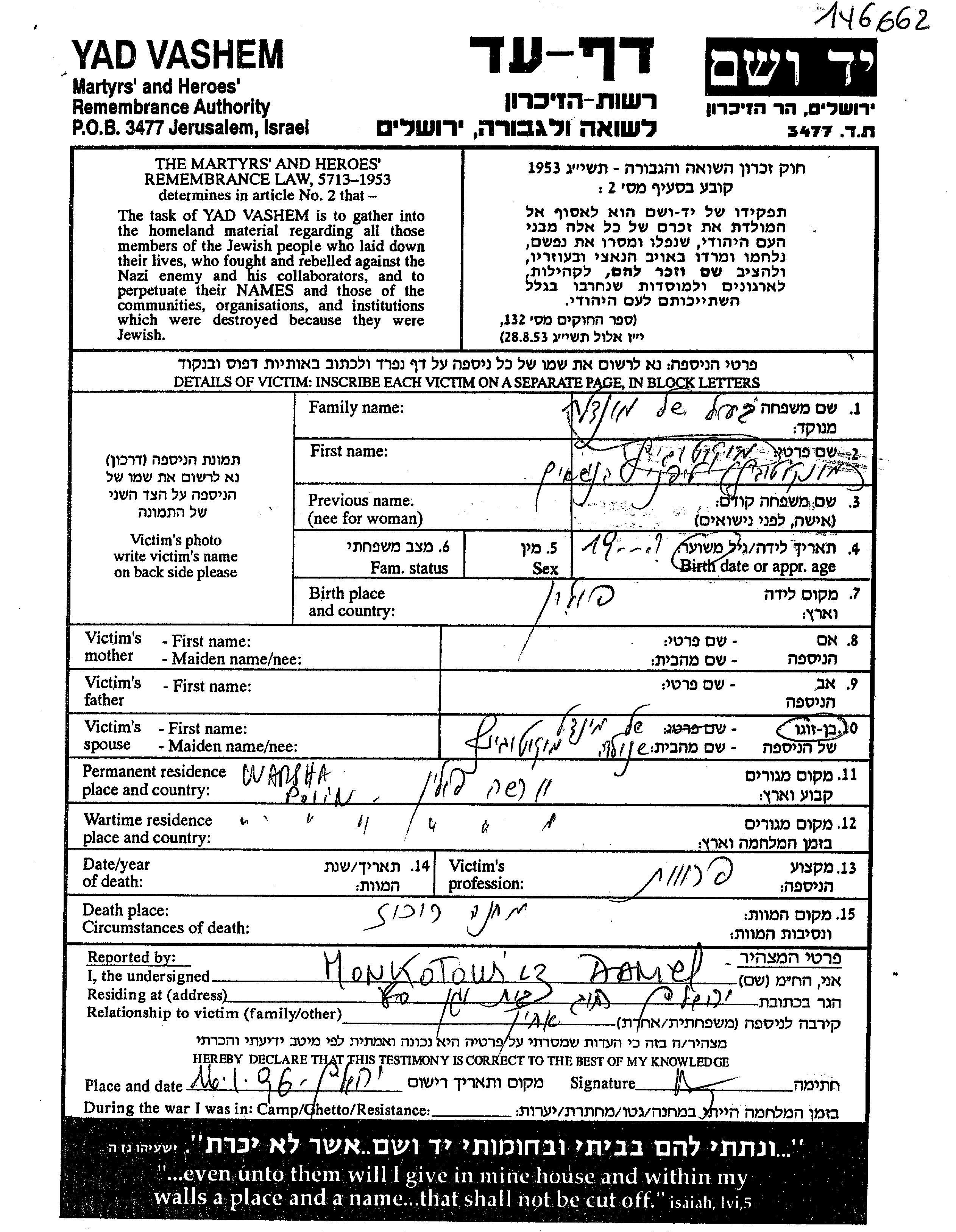 Yad Vashem - Pages of Testimony Names Memorial Collection