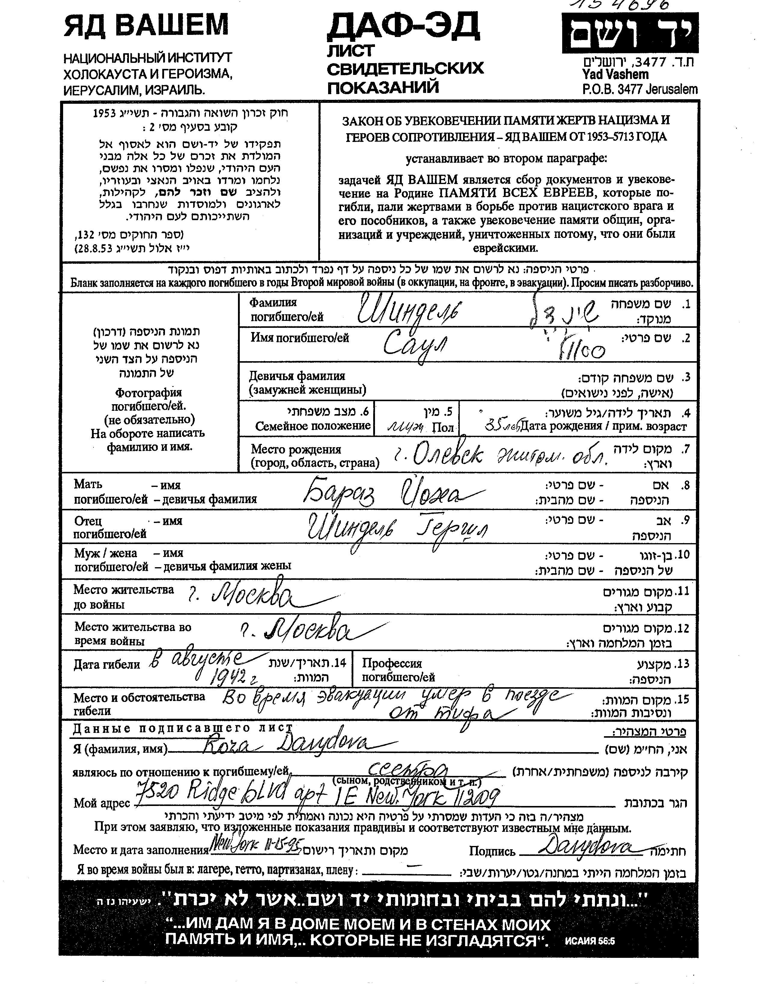 Yad Vashem - Pages of Testimony Names Memorial Collection