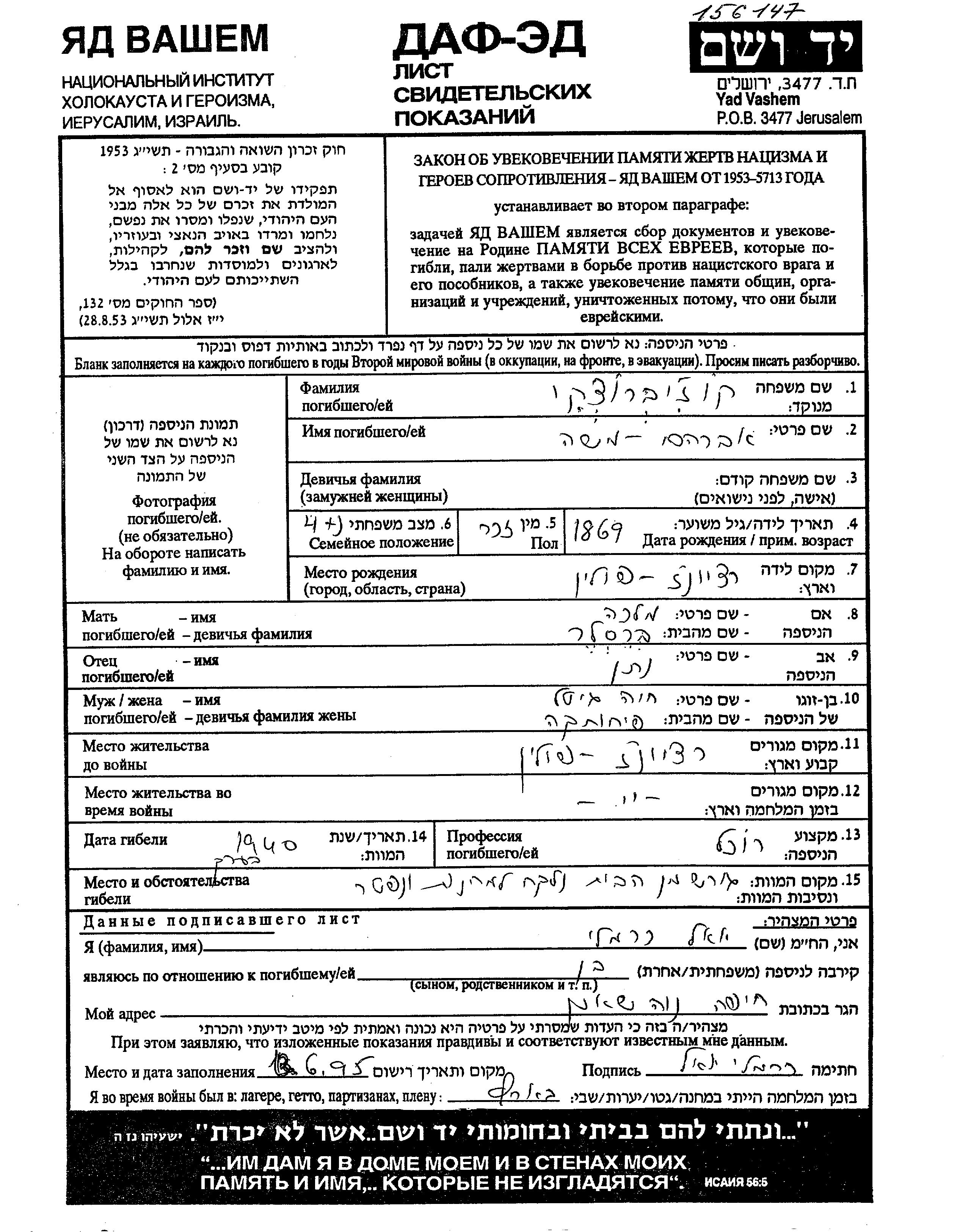 Yad Vashem - Pages of Testimony Names Memorial Collection