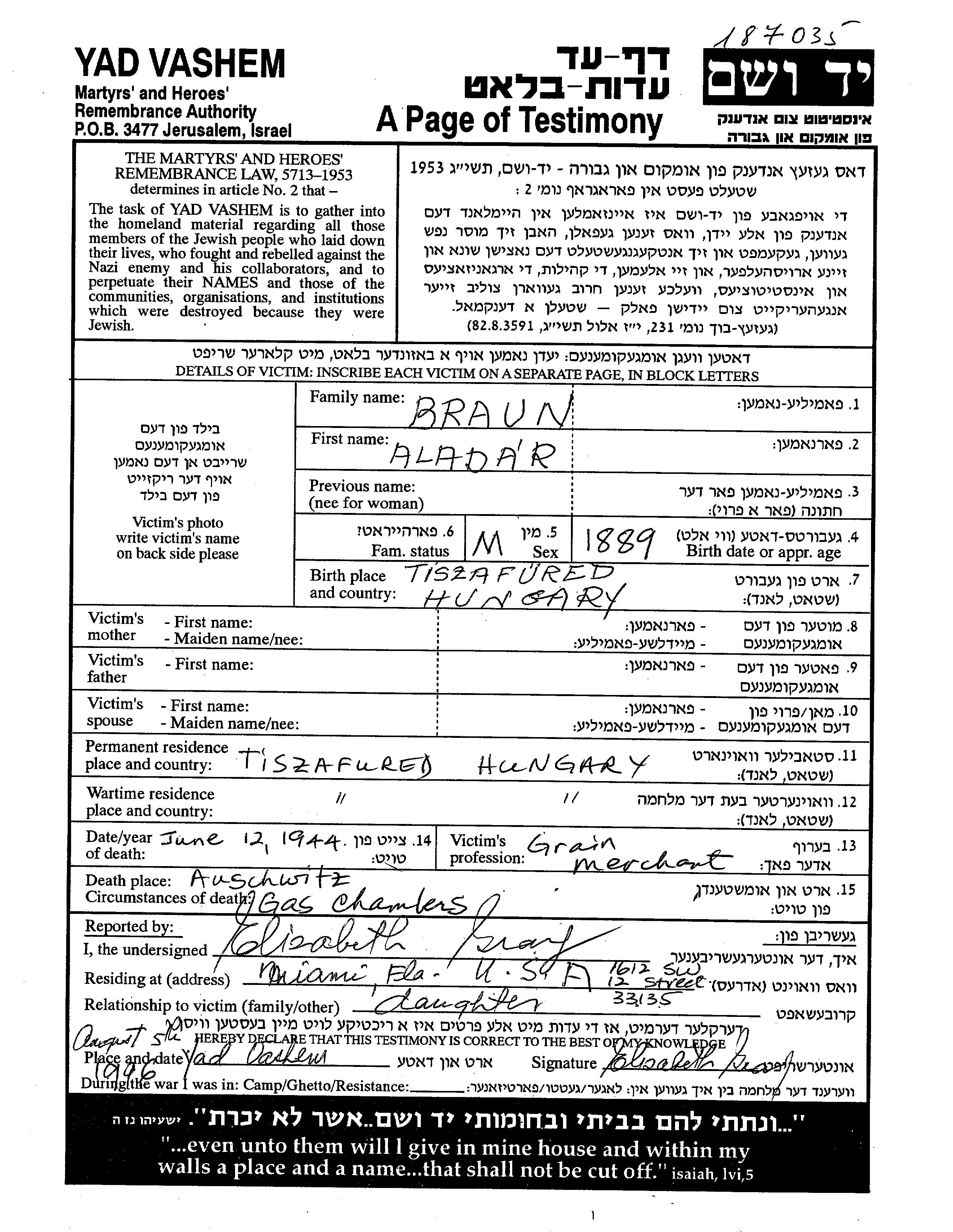 Recherche par lieu de résidence permanente avant la Shoah, ville, village, département, région ou pays.