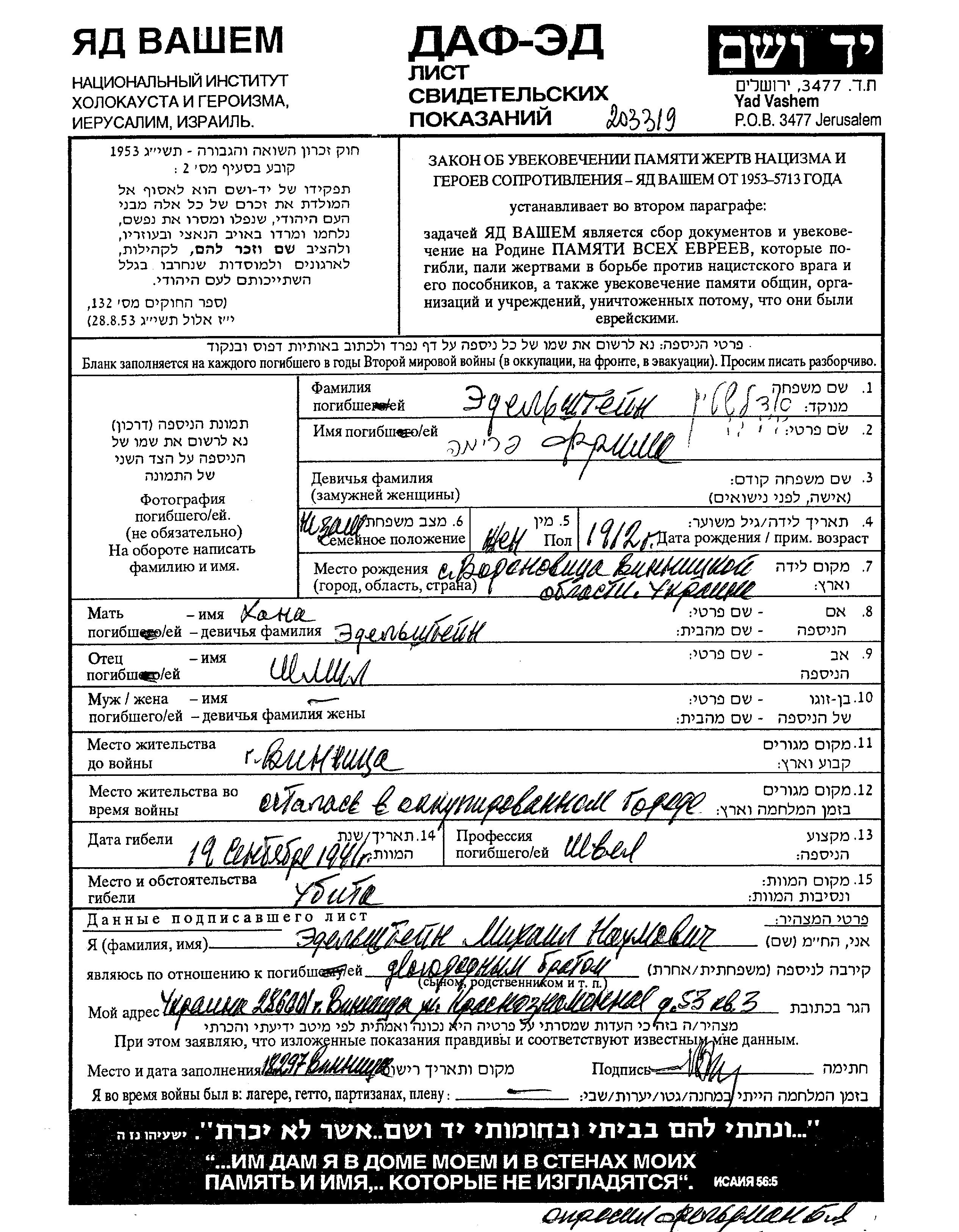 Yad Vashem - Pages of Testimony Names Memorial Collection