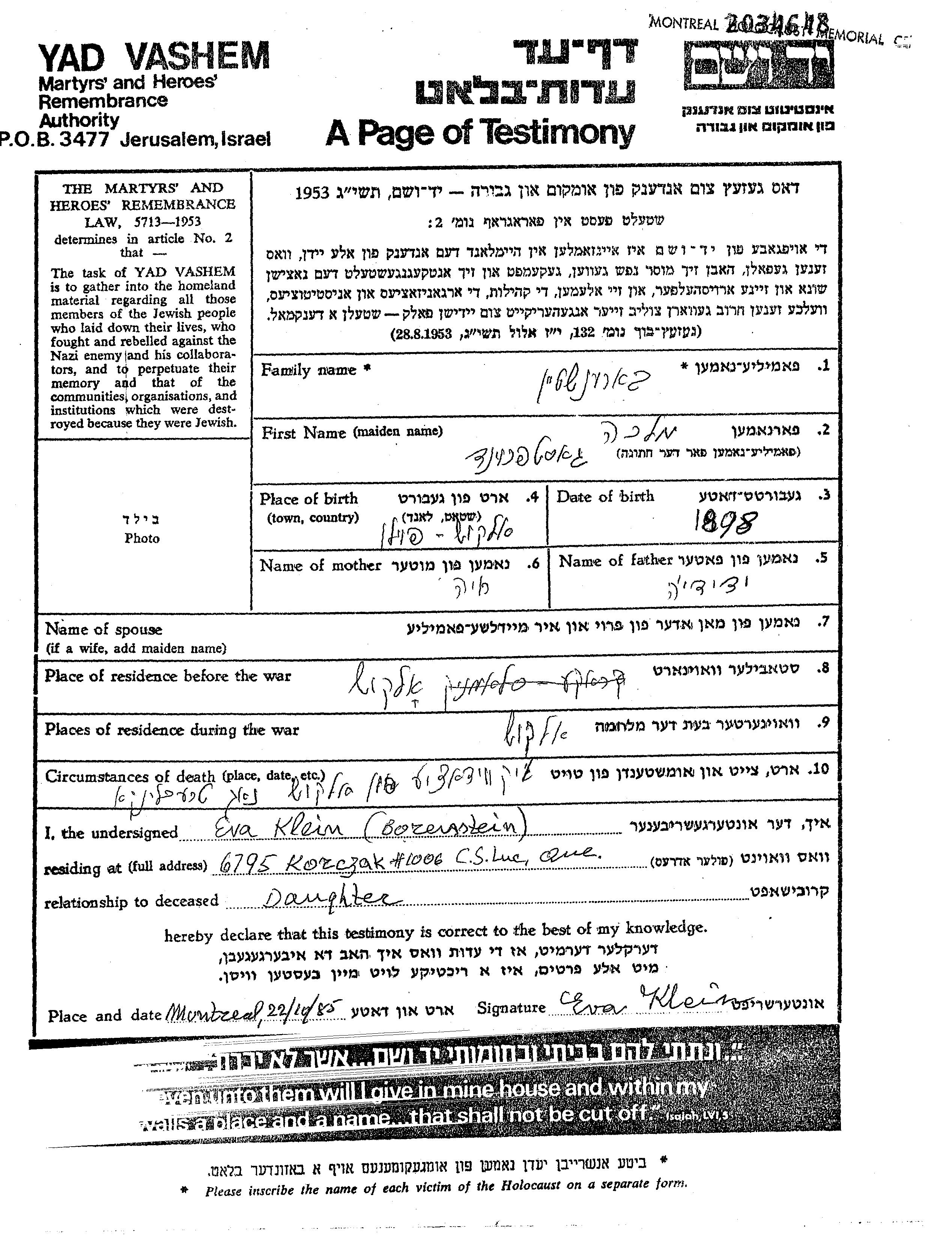 Yad Vashem - Pages of Testimony Names Memorial Collection