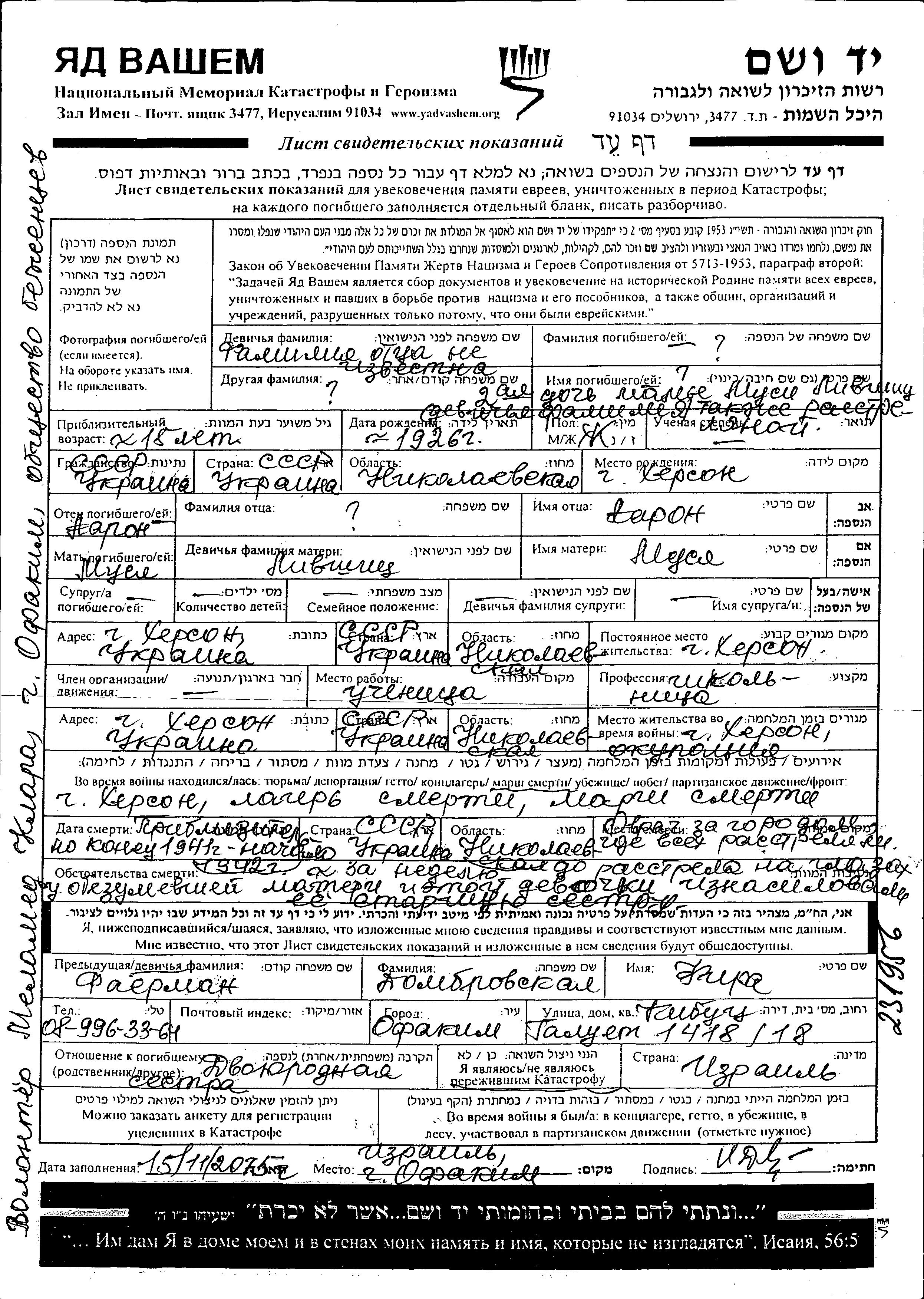 Yad Vashem - Pages of Testimony Names Memorial Collection