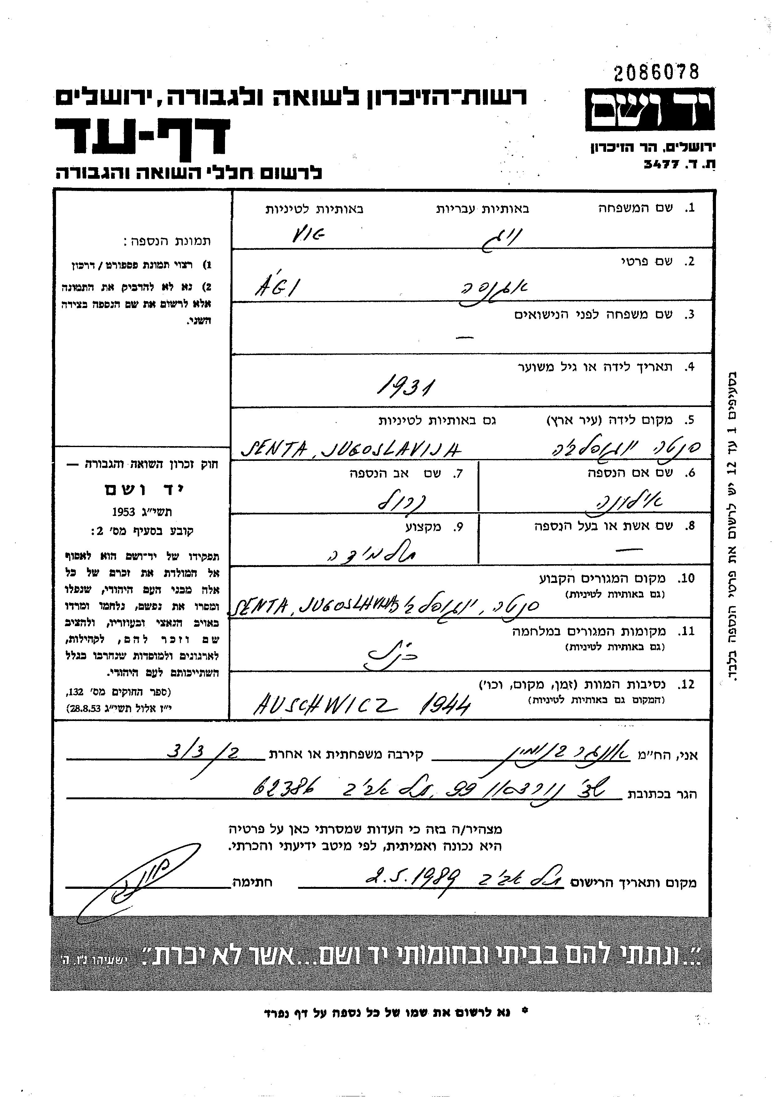 Yad Vashem - Pages of Testimony Names Memorial Collection