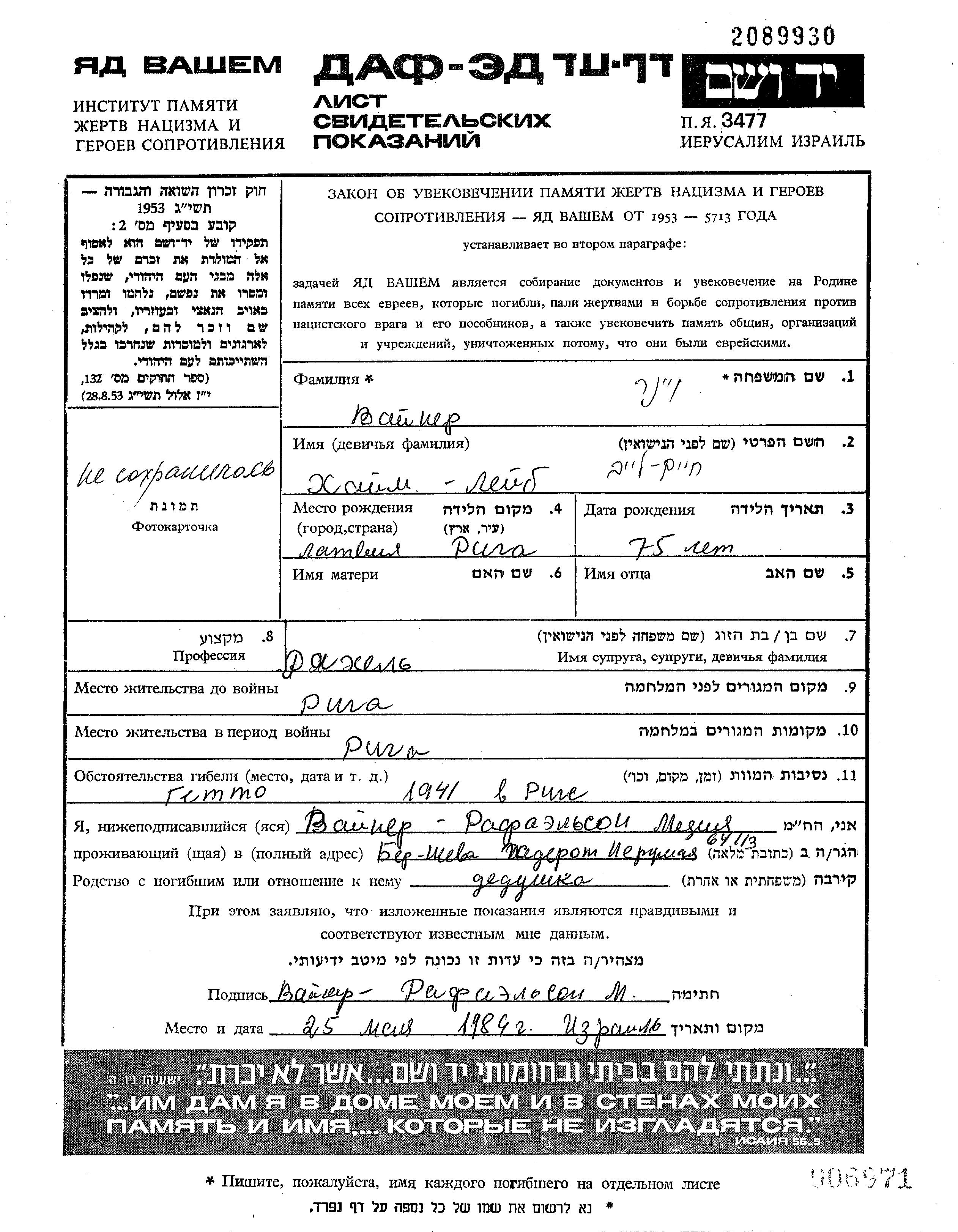 Yad Vashem - Pages of Testimony Names Memorial Collection