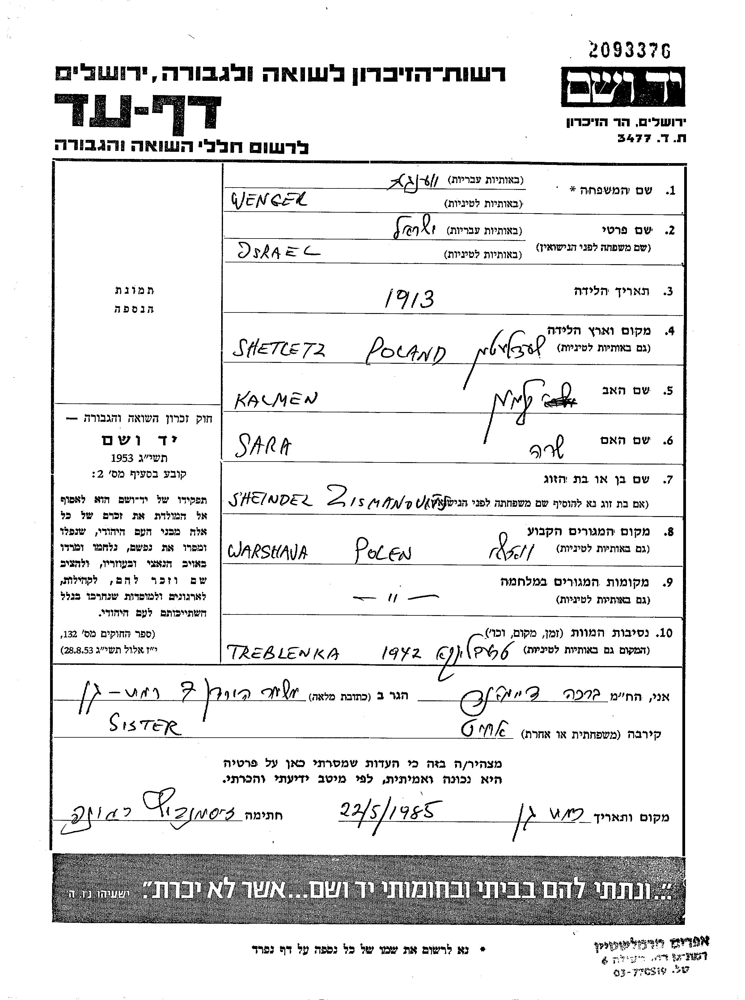 Yad Vashem - Pages of Testimony Names Memorial Collection