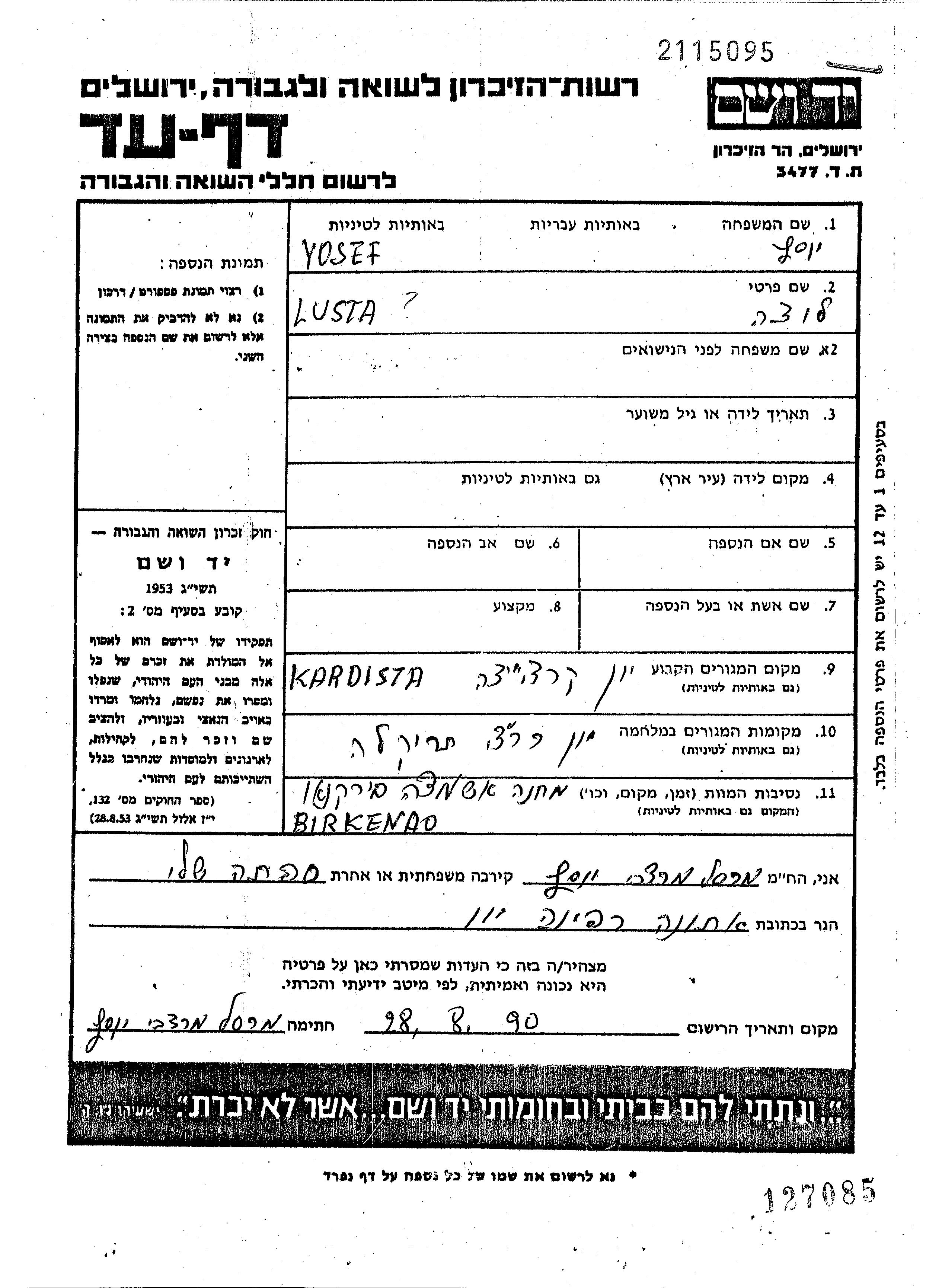 Lusta Lutsa Iosef. Il était Mariée à Sami. Avant la seconde guerre mondiale il vivait à Karditsa, Grèce. Au cours de la guerre, il était à Karditsa, Grèce.