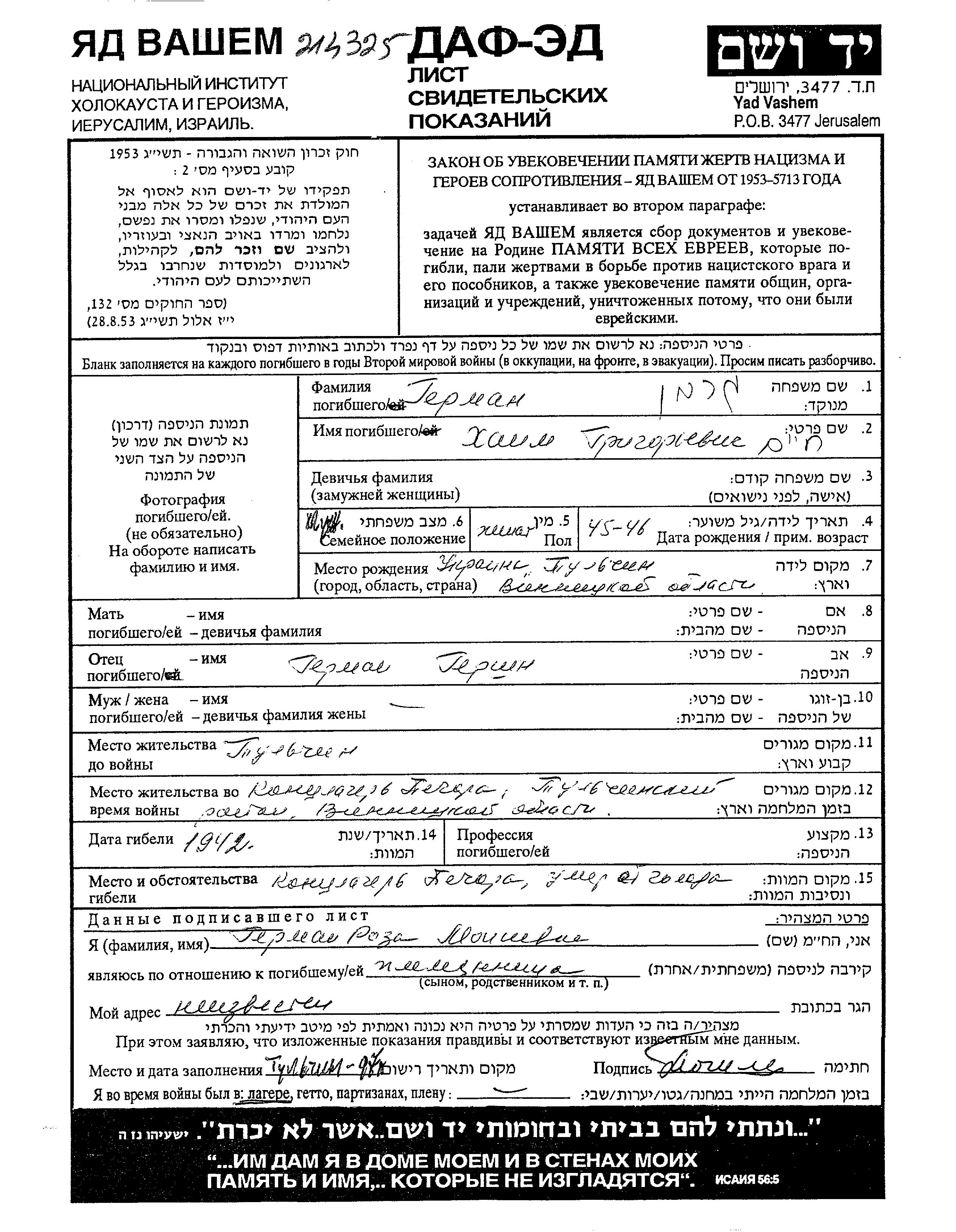 Yad Vashem - Pages of Testimony Names Memorial Collection