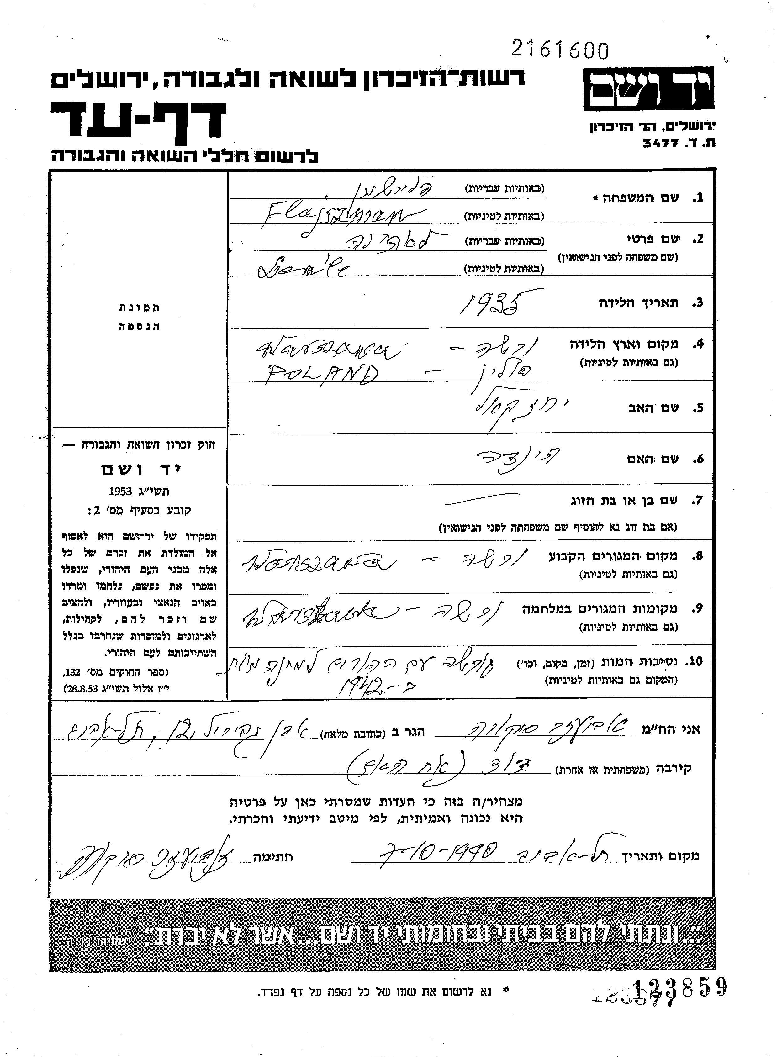 Yad Vashem - Pages of Testimony Names Memorial Collection
