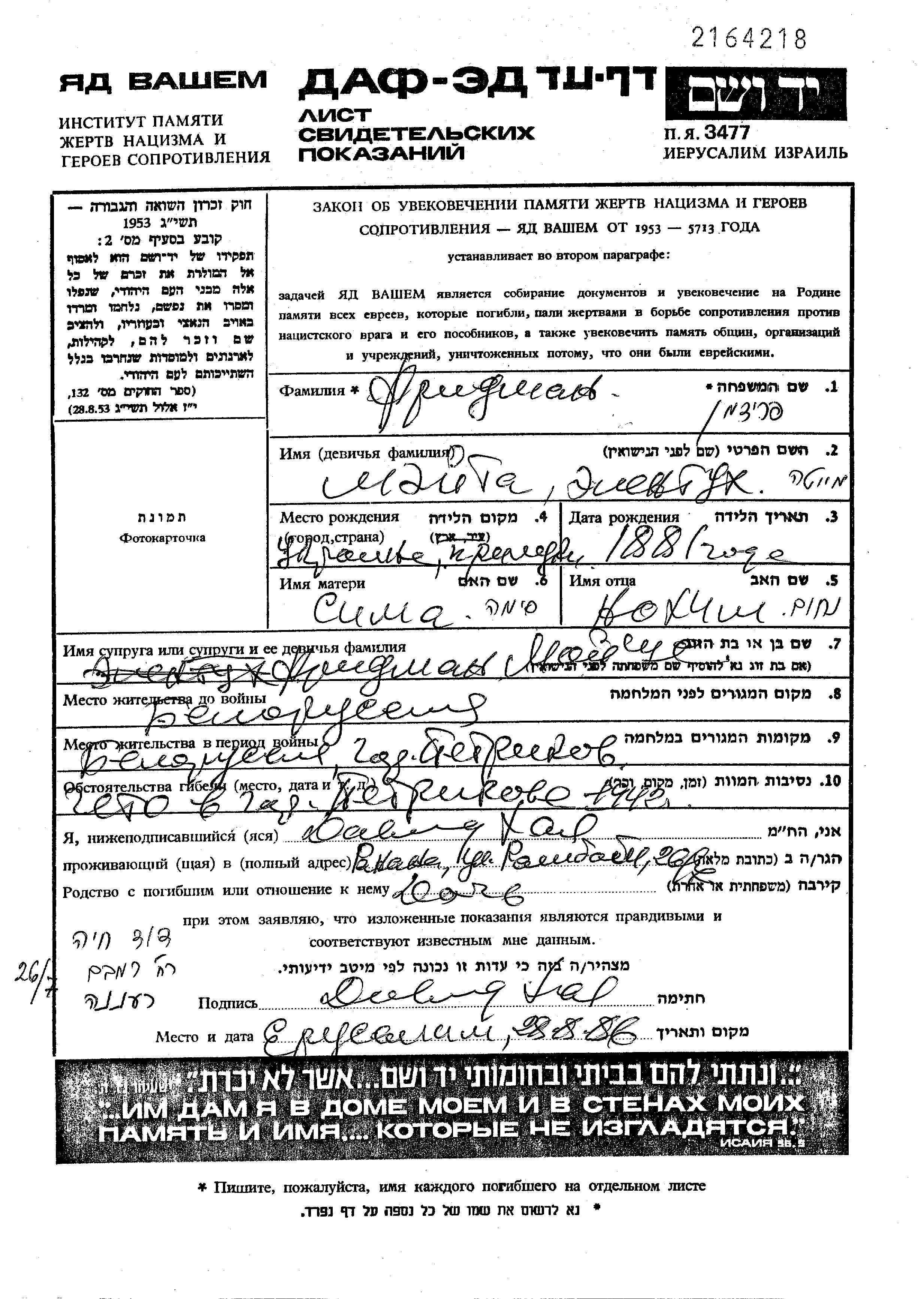 Yad Vashem - Pages of Testimony Names Memorial Collection