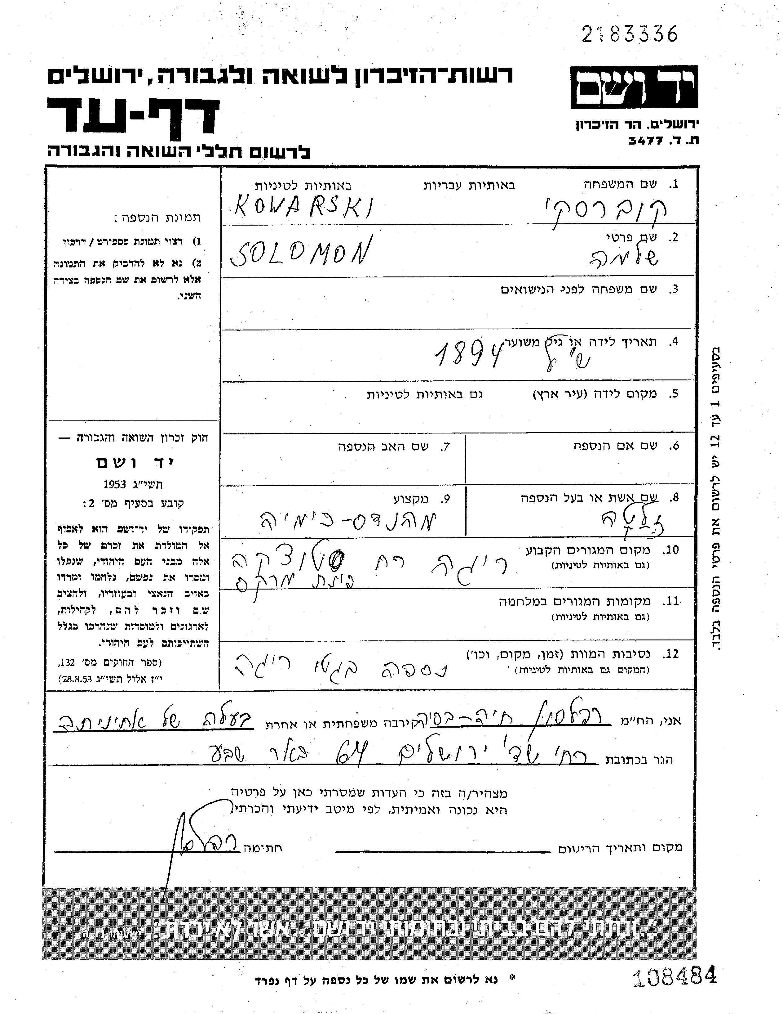 Recherche par lieu de résidence permanente avant la Shoah, ville, village, département, région ou pays.