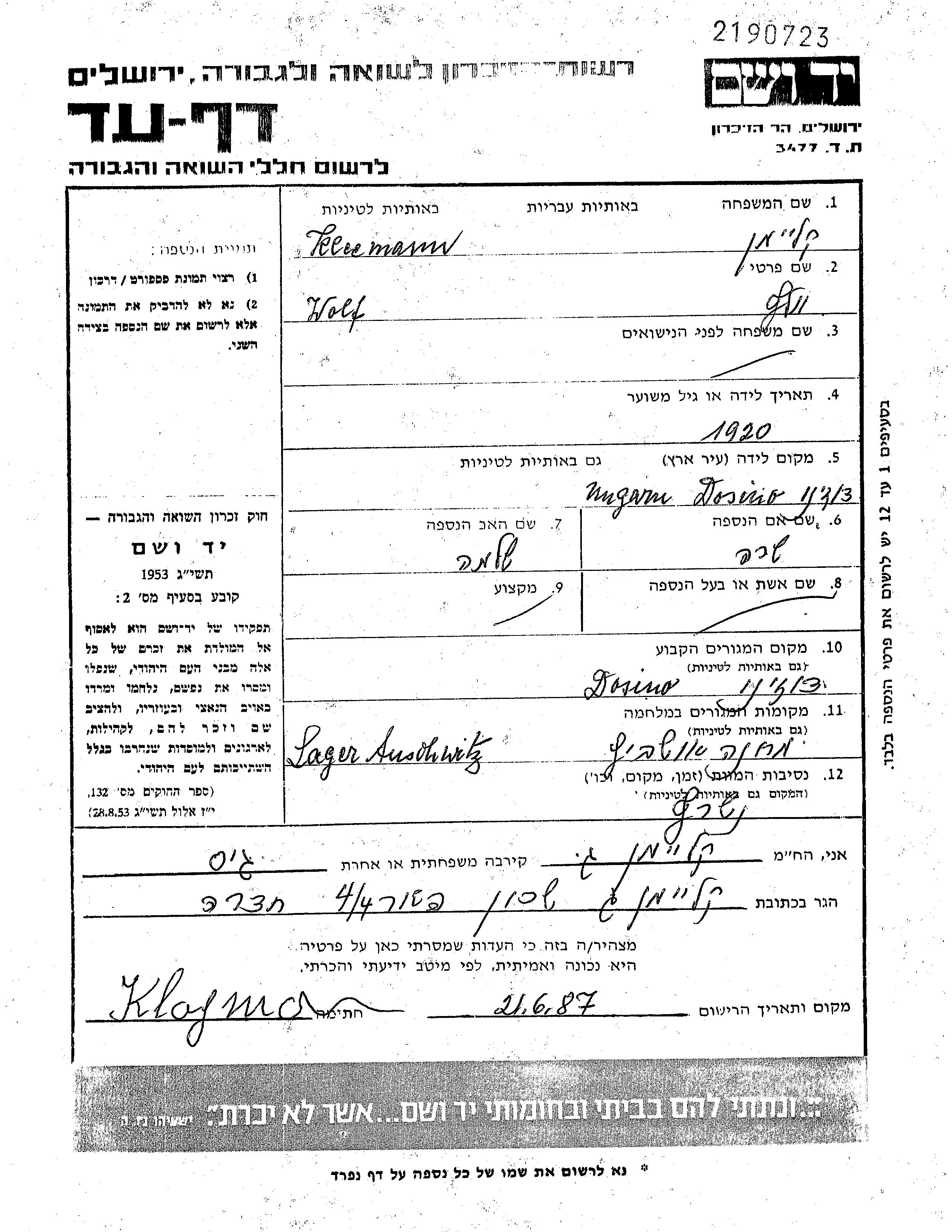 Yad Vashem - Pages of Testimony Names Memorial Collection