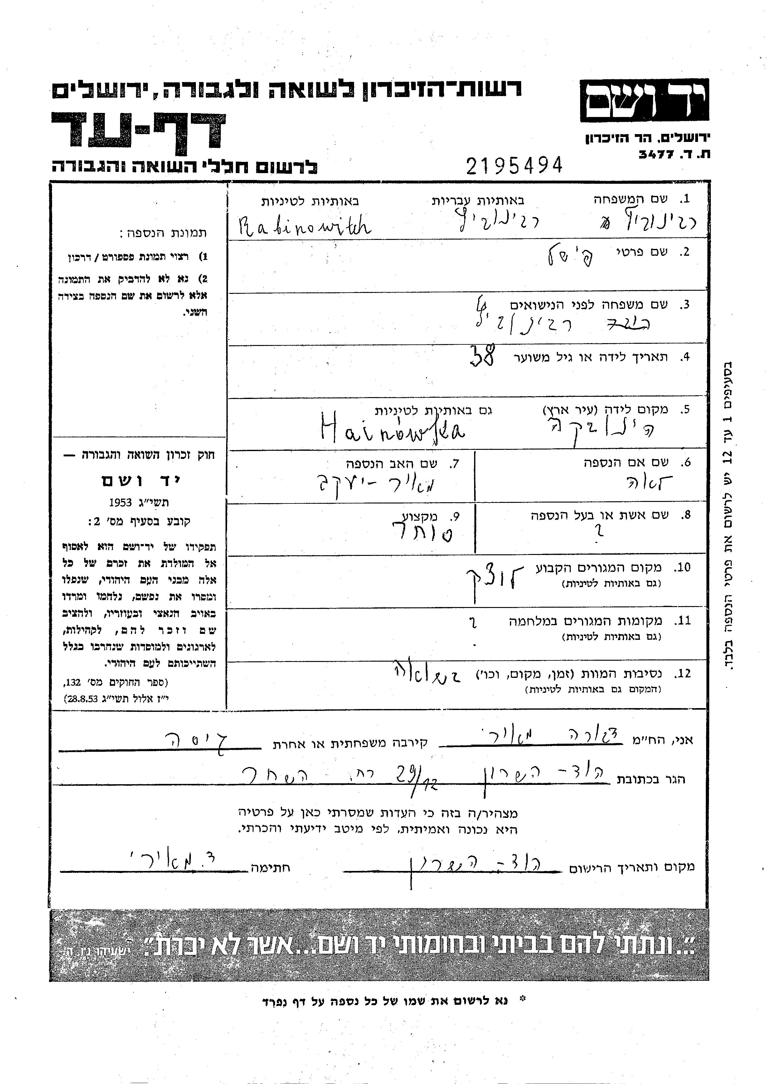 Yad Vashem - Pages of Testimony Names Memorial Collection