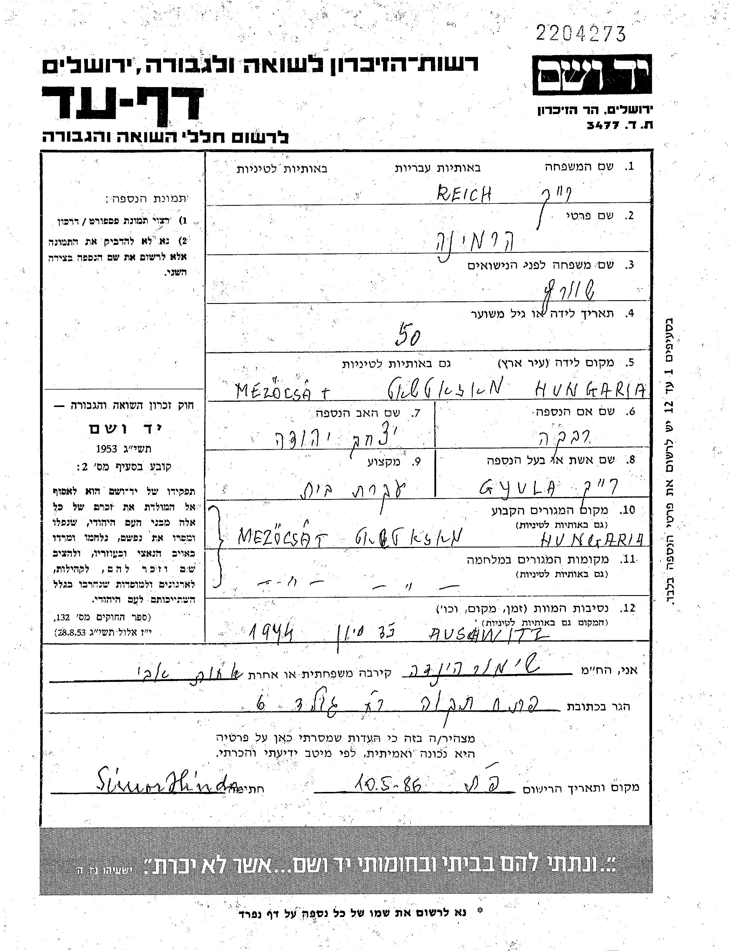 Yad Vashem - Pages of Testimony Names Memorial Collection