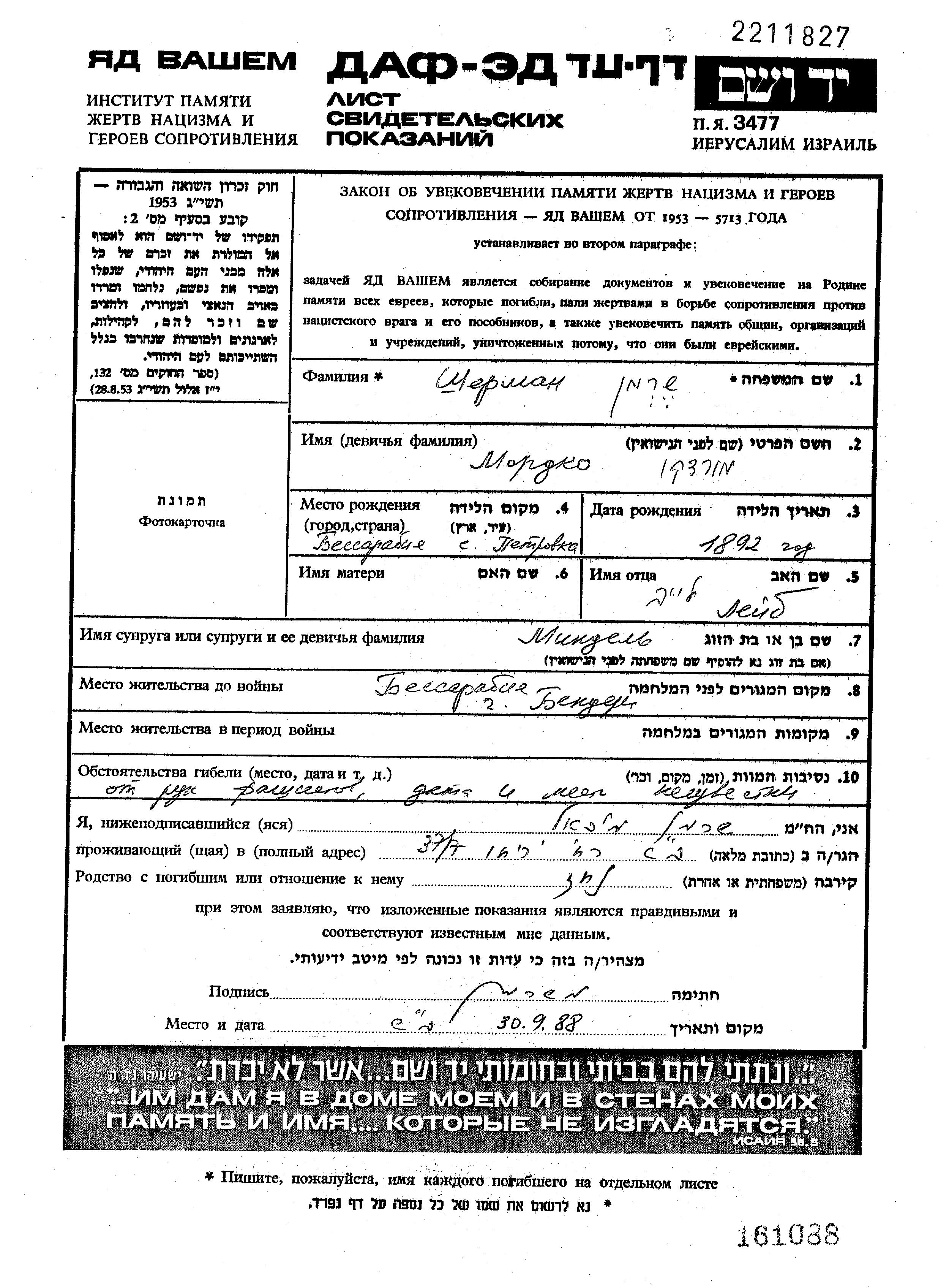Yad Vashem - Pages of Testimony Names Memorial Collection