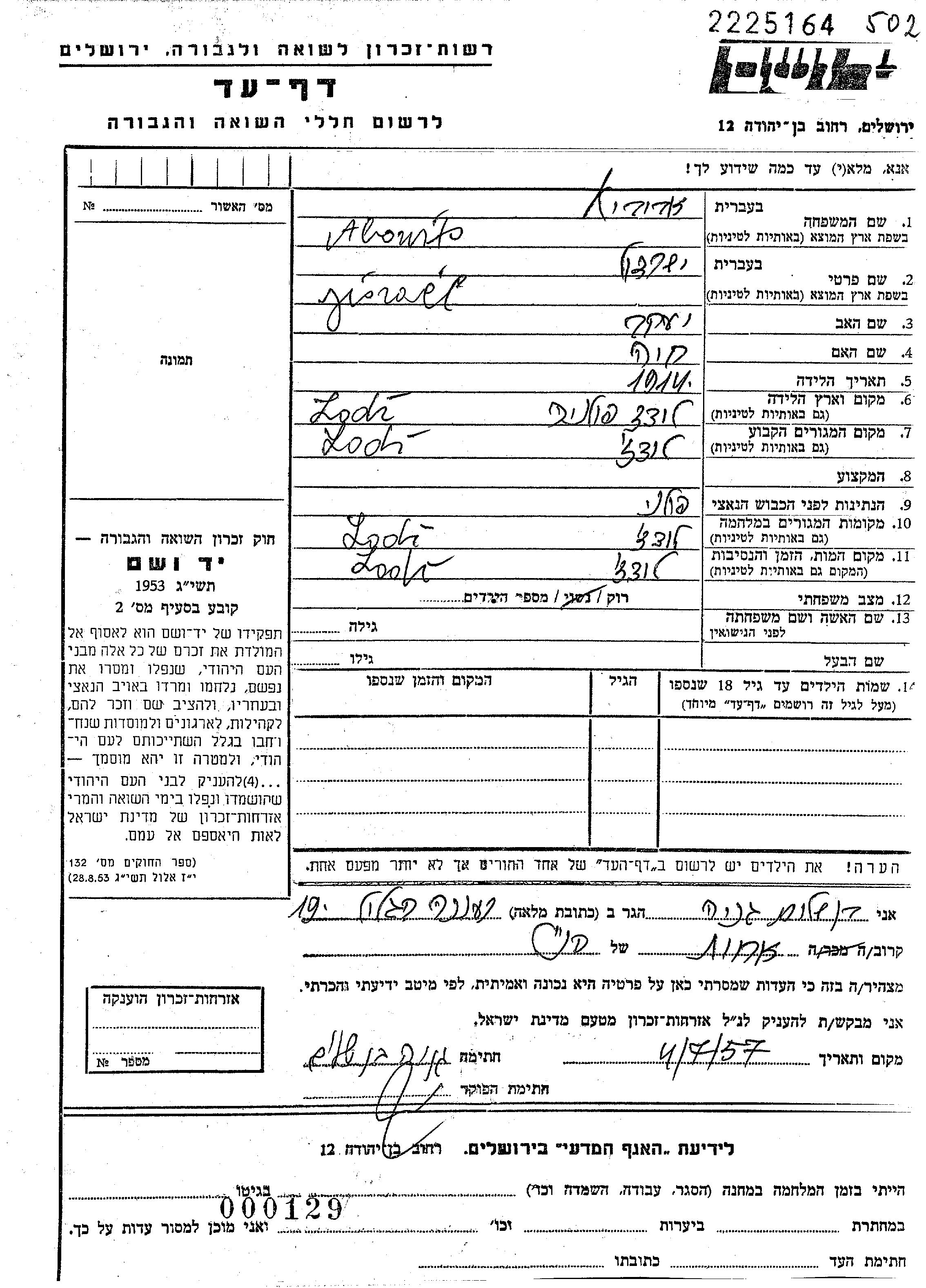 Yad Vashem - Pages of Testimony Names Memorial Collection
