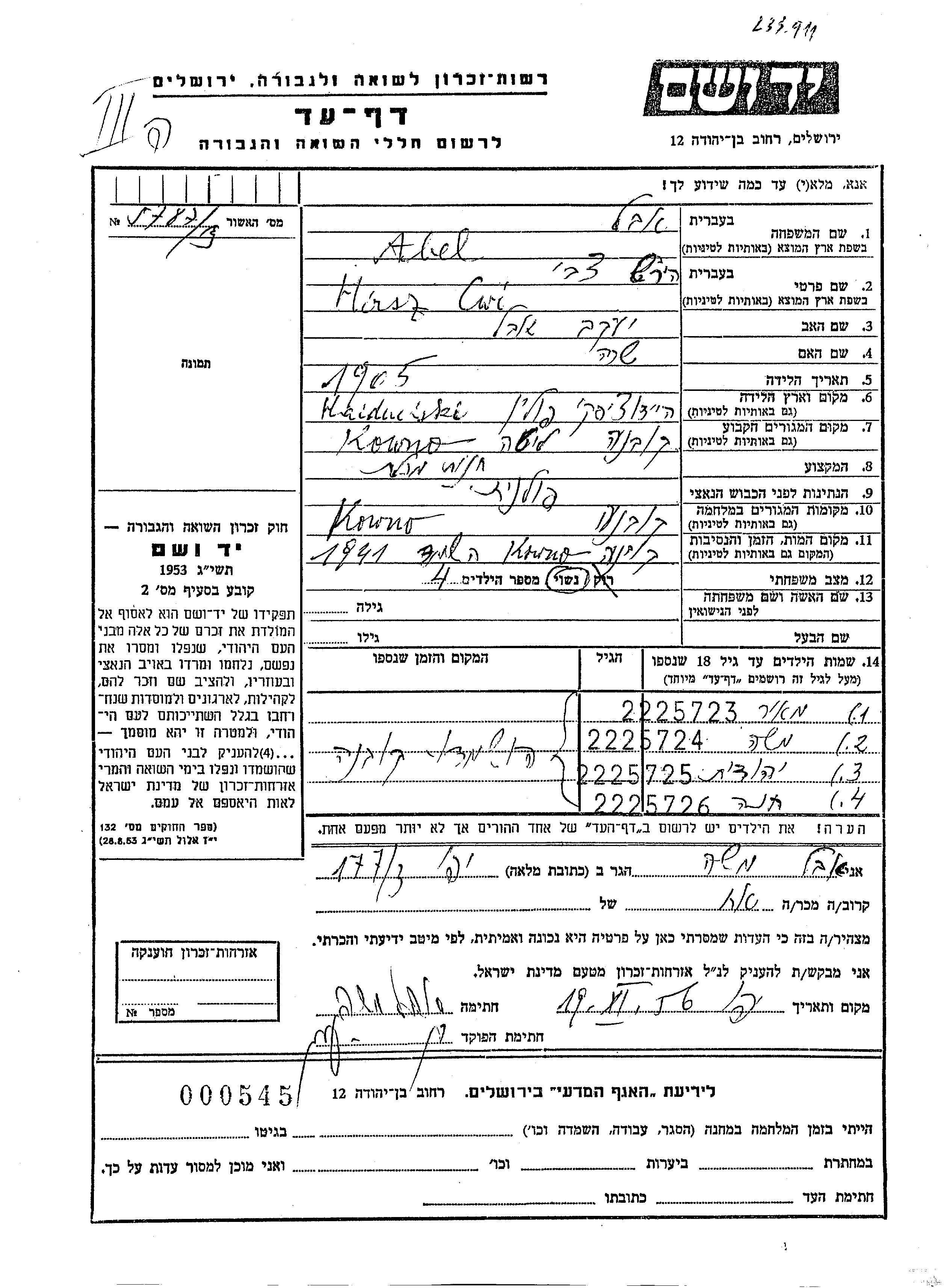 Yad Vashem - Pages of Testimony Names Memorial Collection