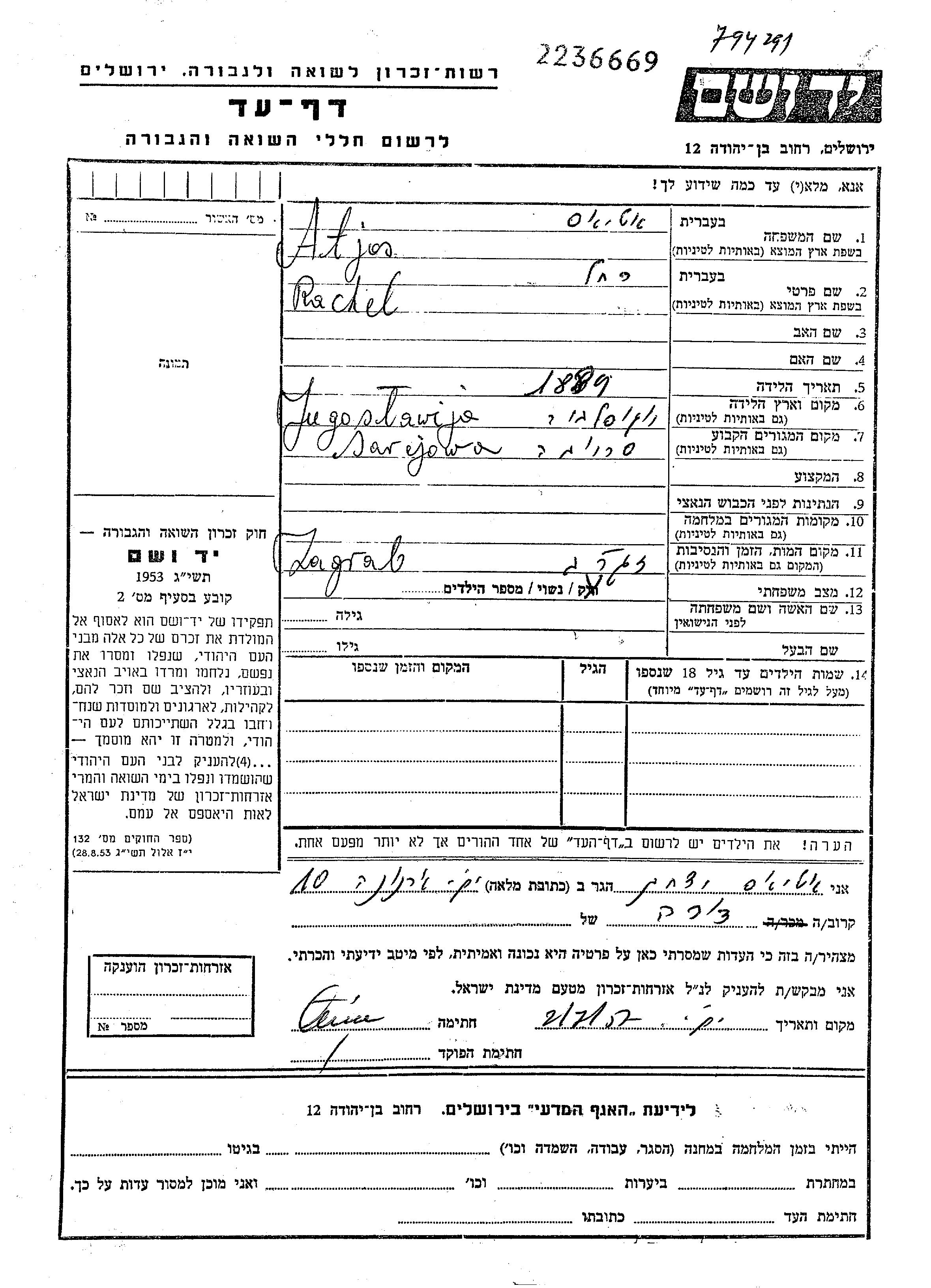 Yad Vashem - Pages of Testimony Names Memorial Collection