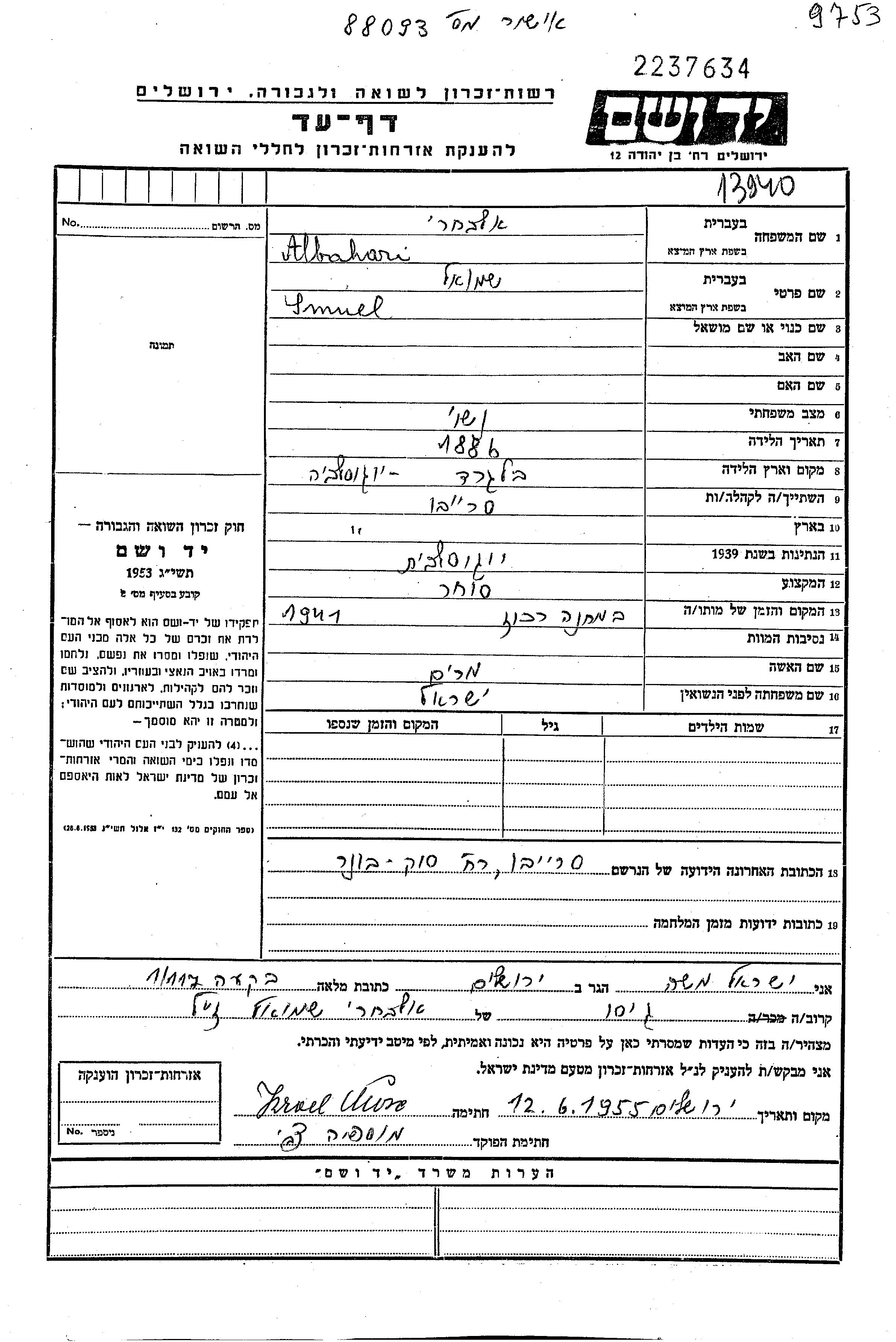 Yad Vashem - Pages of Testimony Names Memorial Collection