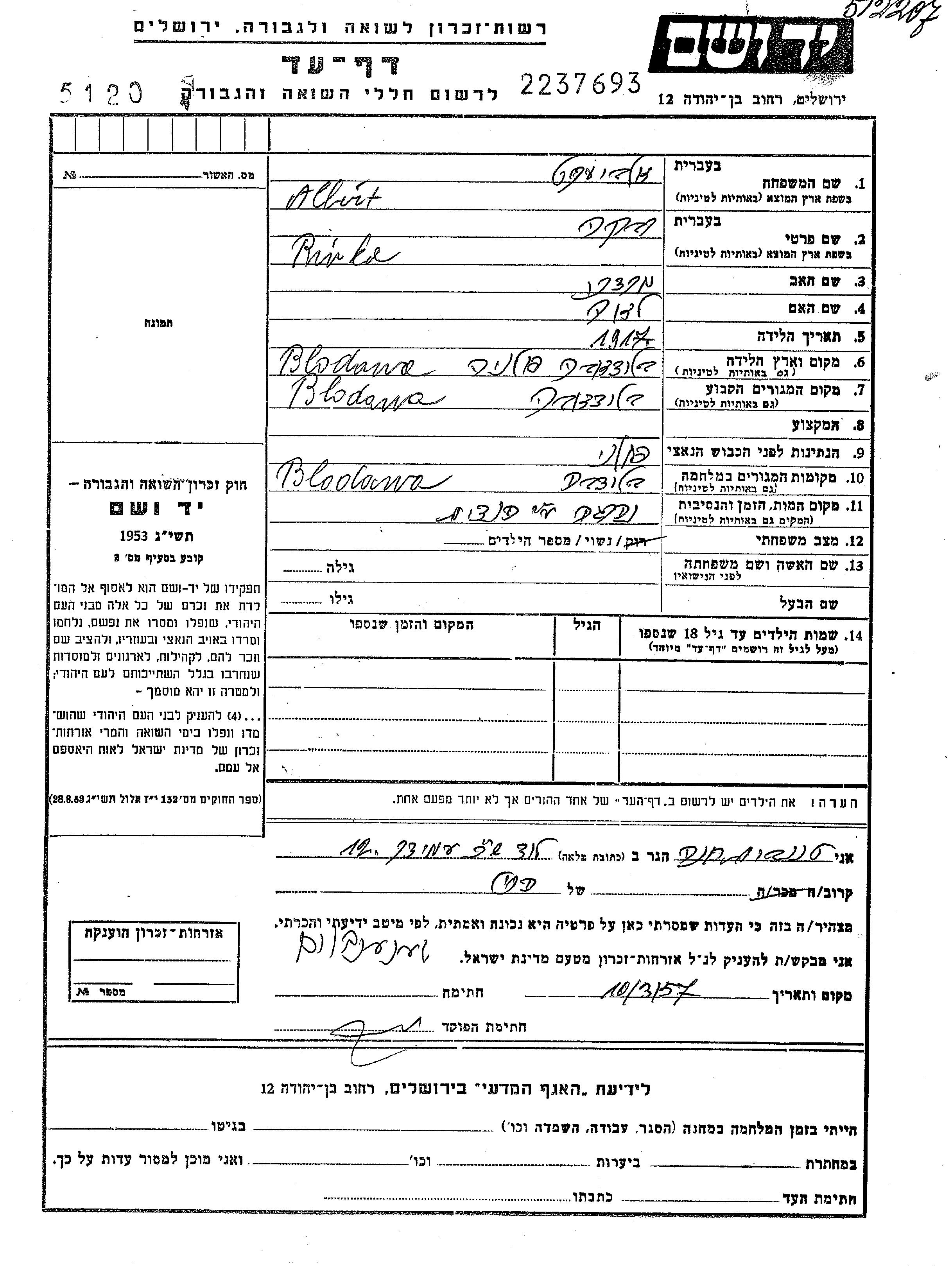 Yad Vashem - Pages of Testimony Names Memorial Collection