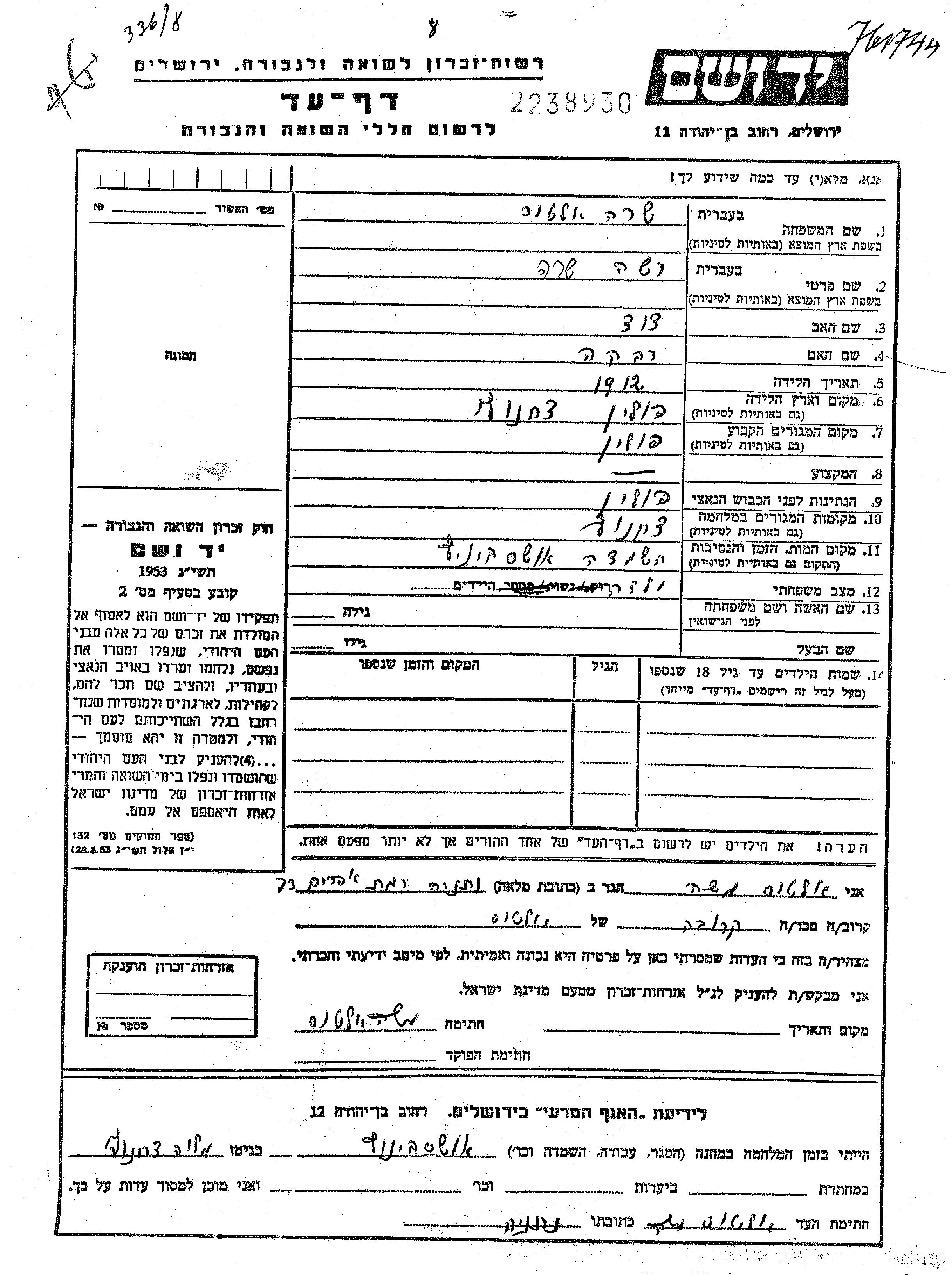 Yad Vashem - Pages of Testimony Names Memorial Collection