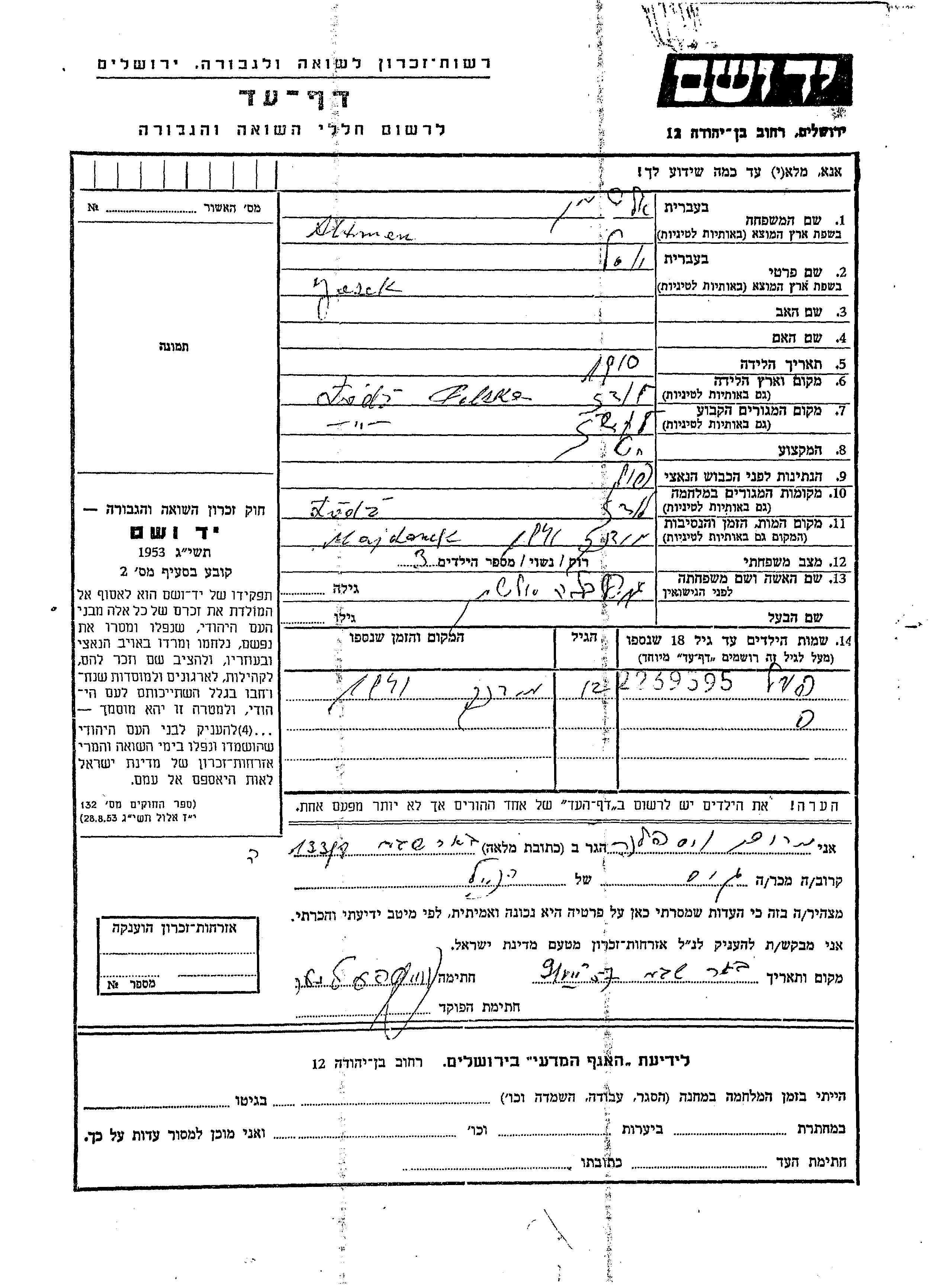 Yad Vashem - Pages of Testimony Names Memorial Collection