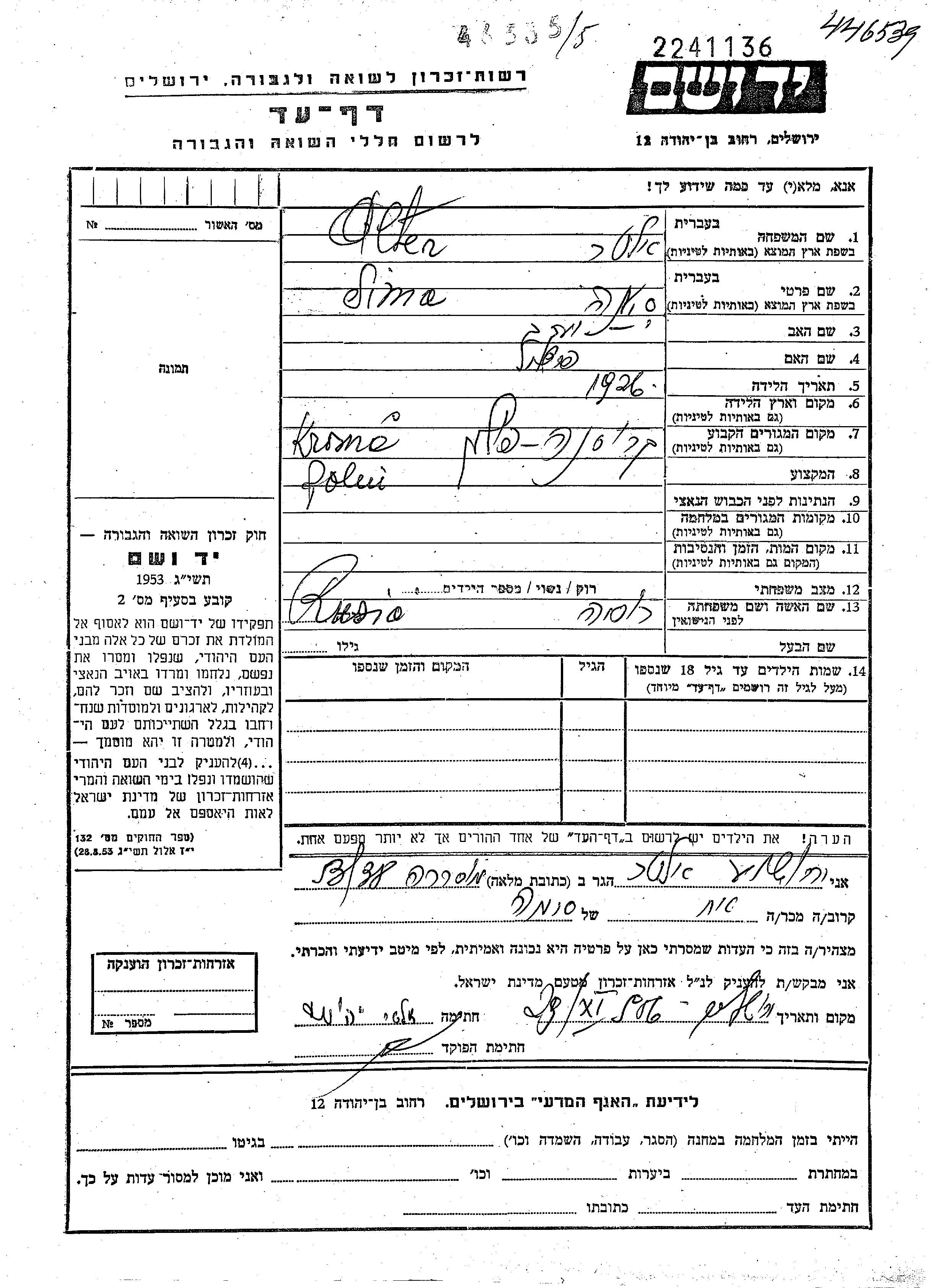 Yad Vashem - Pages of Testimony Names Memorial Collection