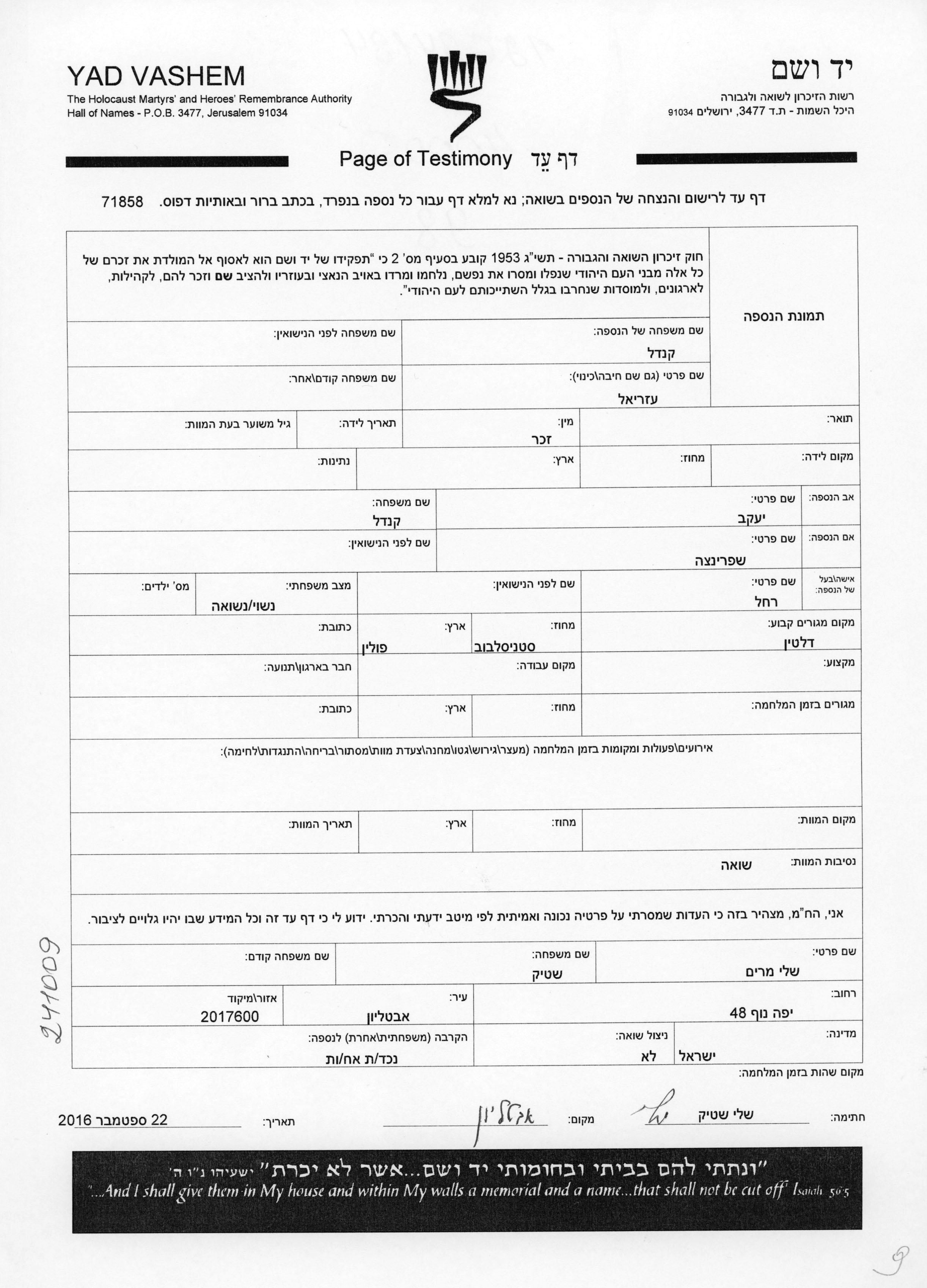 Yad Vashem - Pages of Testimony Names Memorial Collection