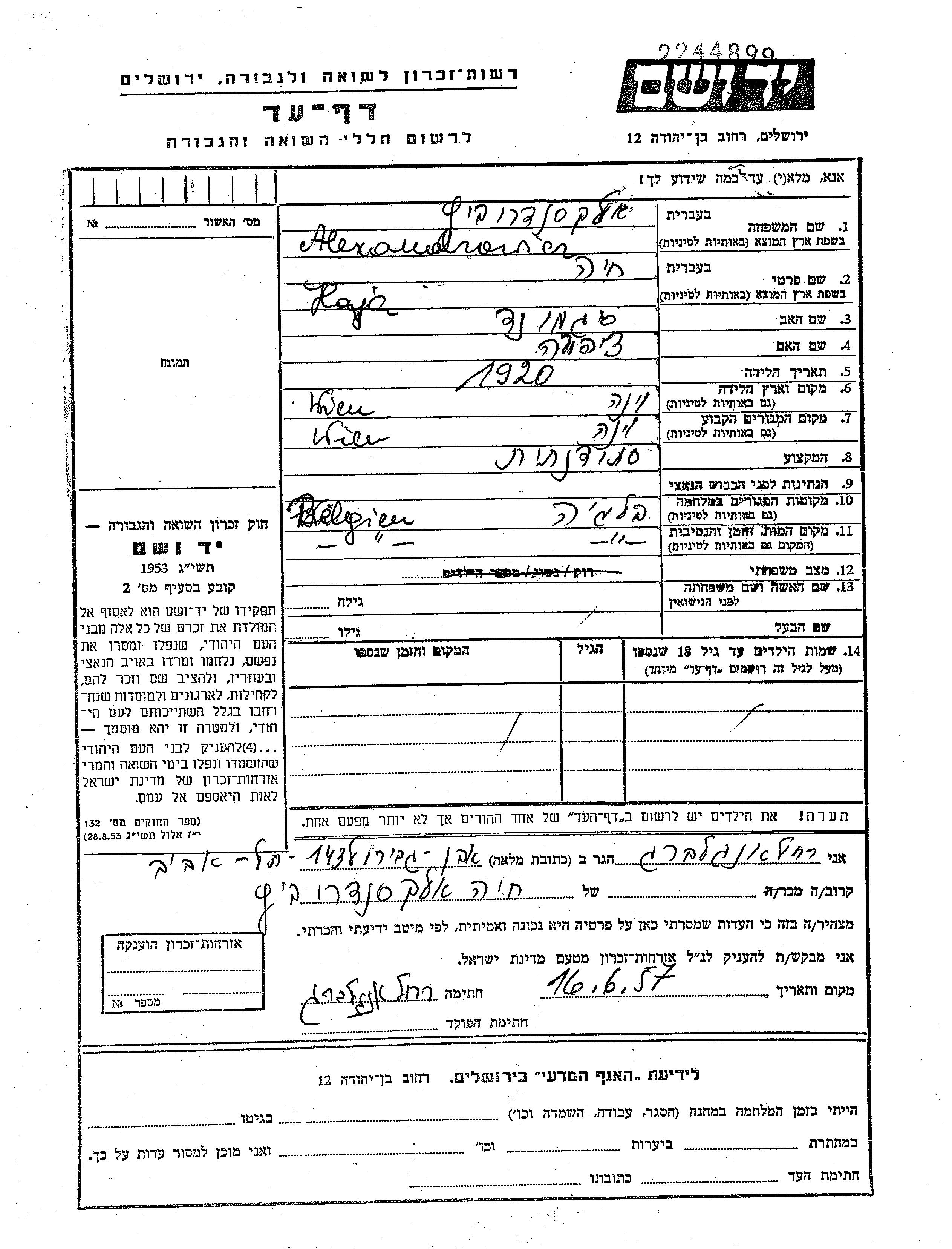 Yad Vashem - Pages of Testimony Names Memorial Collection