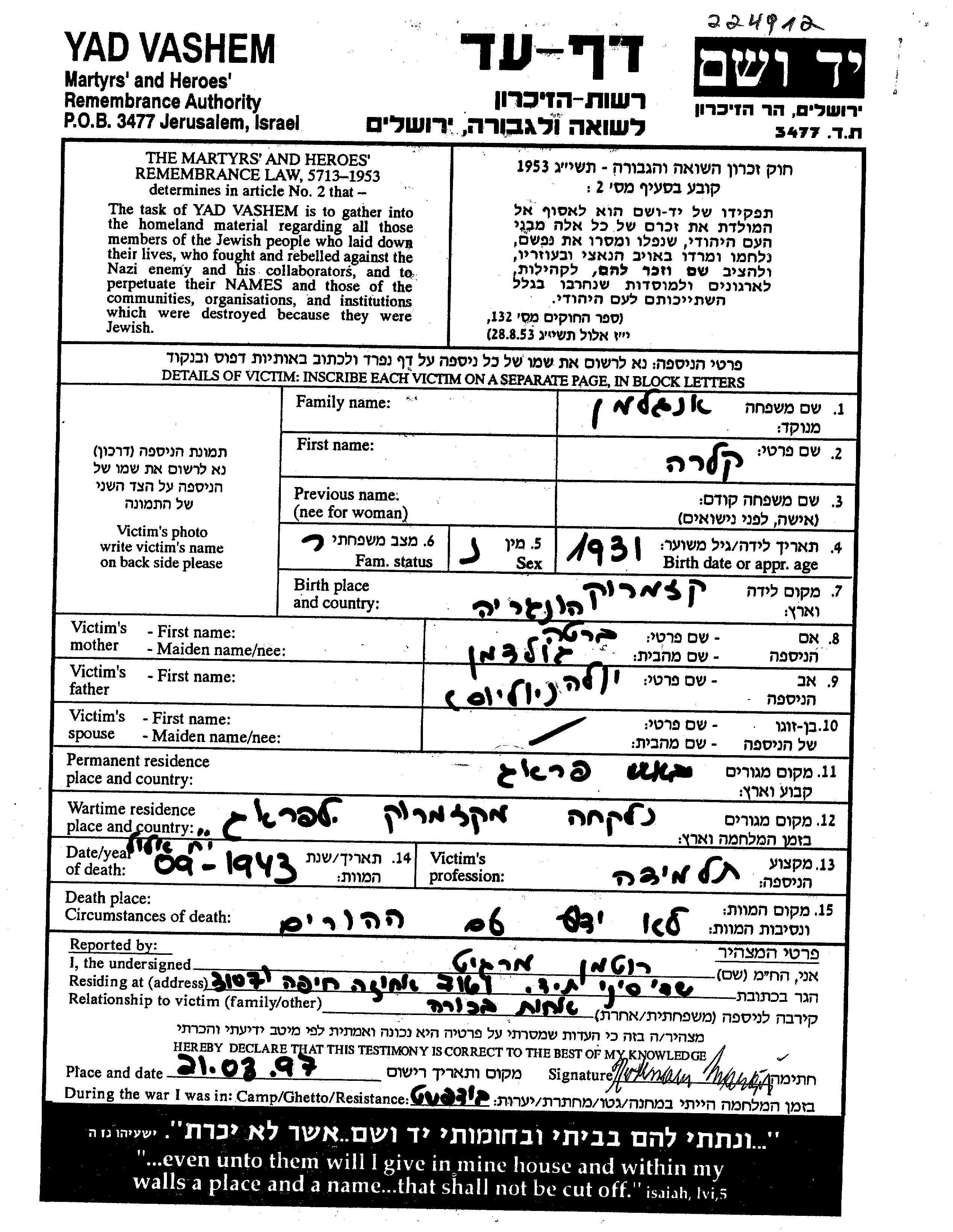 Yad Vashem - Pages of Testimony Names Memorial Collection