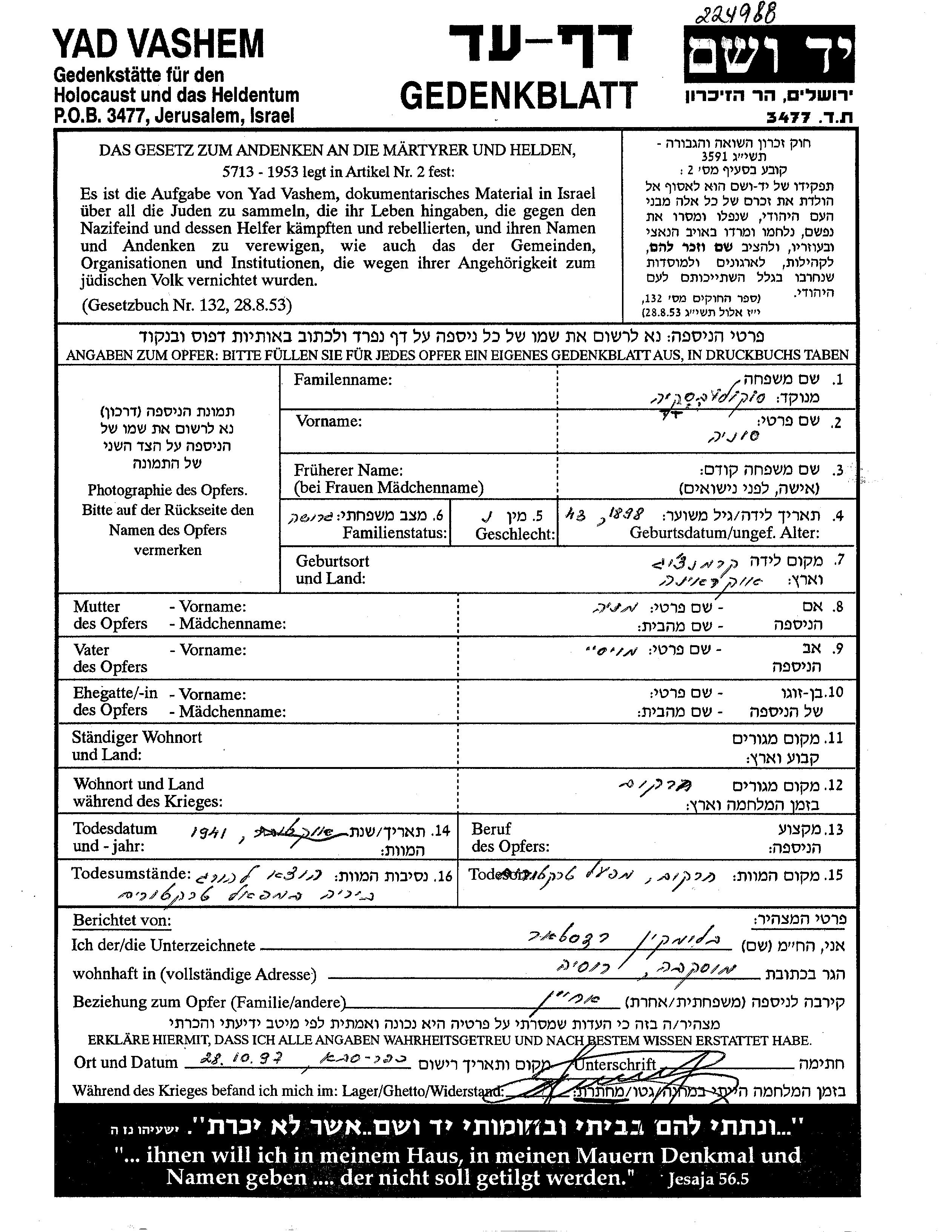 Yad Vashem - Pages of Testimony Names Memorial Collection