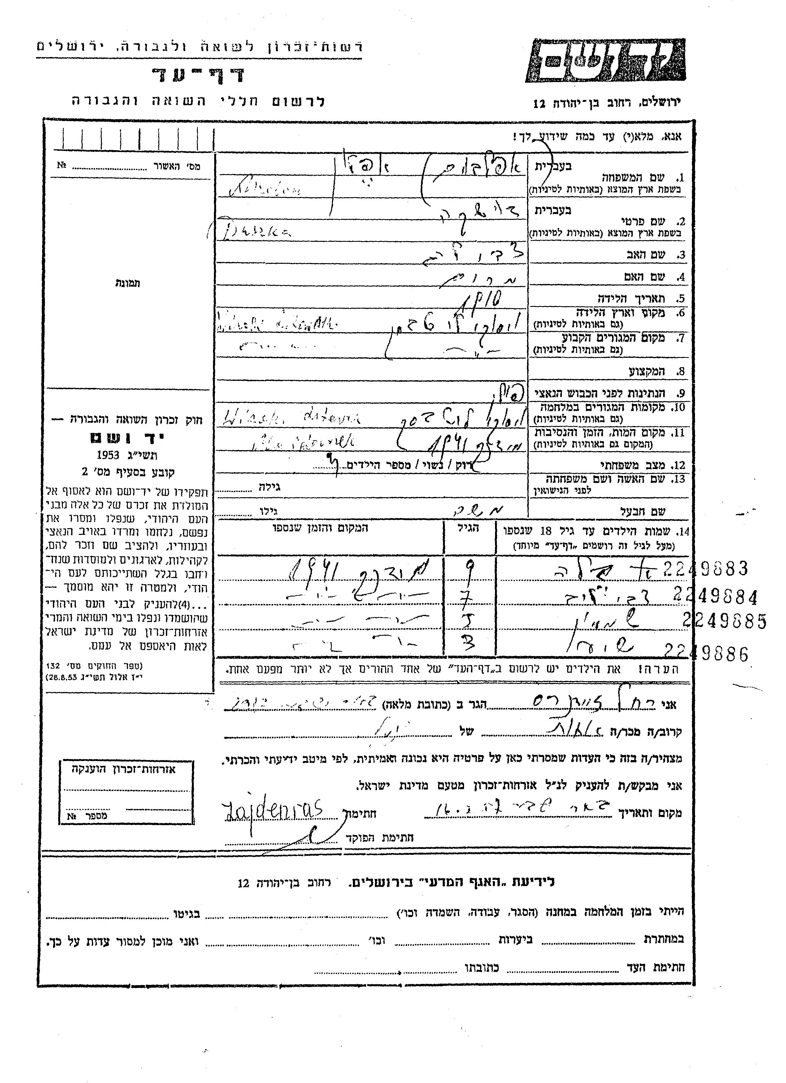 Yad Vashem - Pages of Testimony Names Memorial Collection