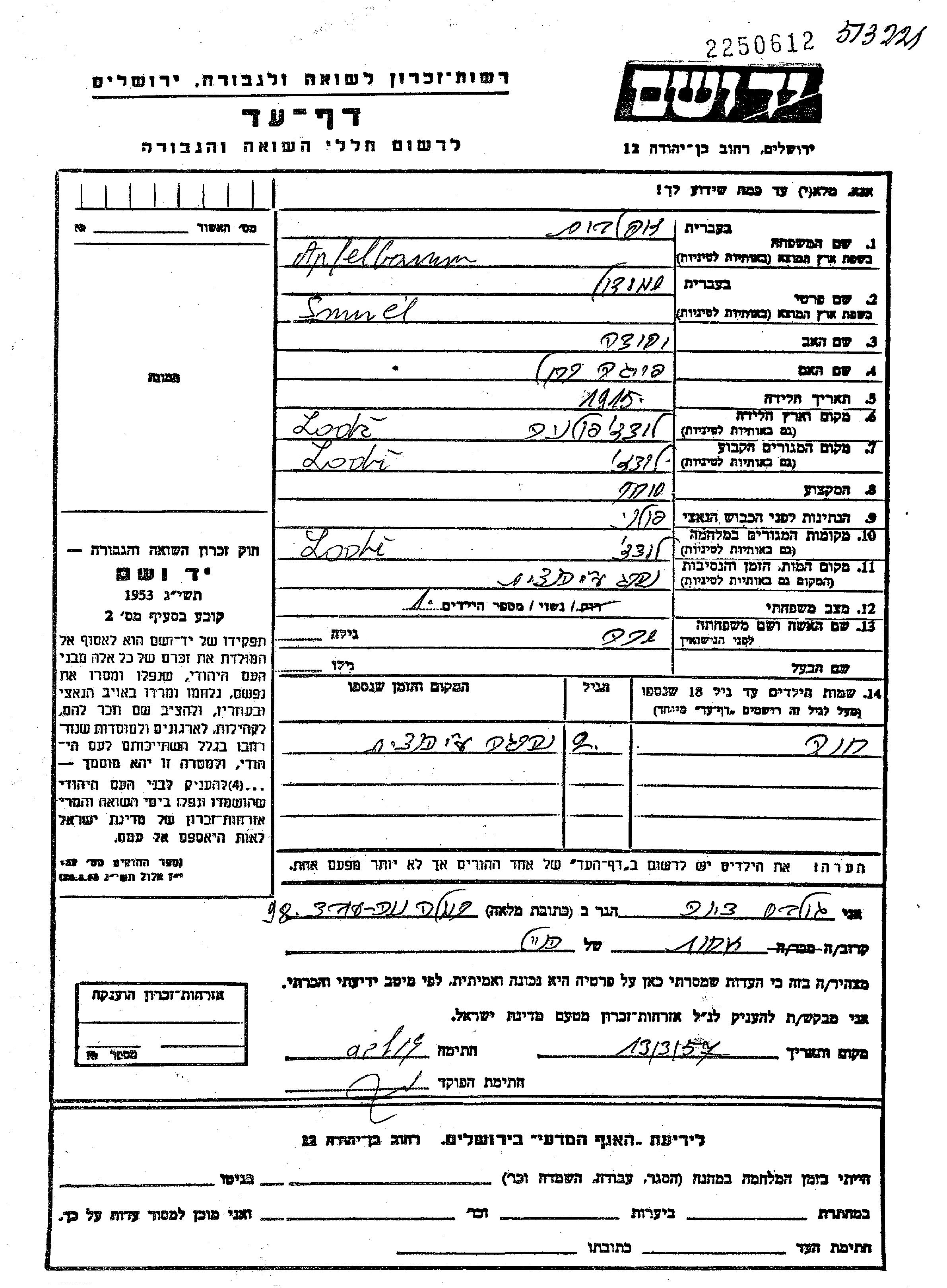 Yad Vashem - Pages of Testimony Names Memorial Collection