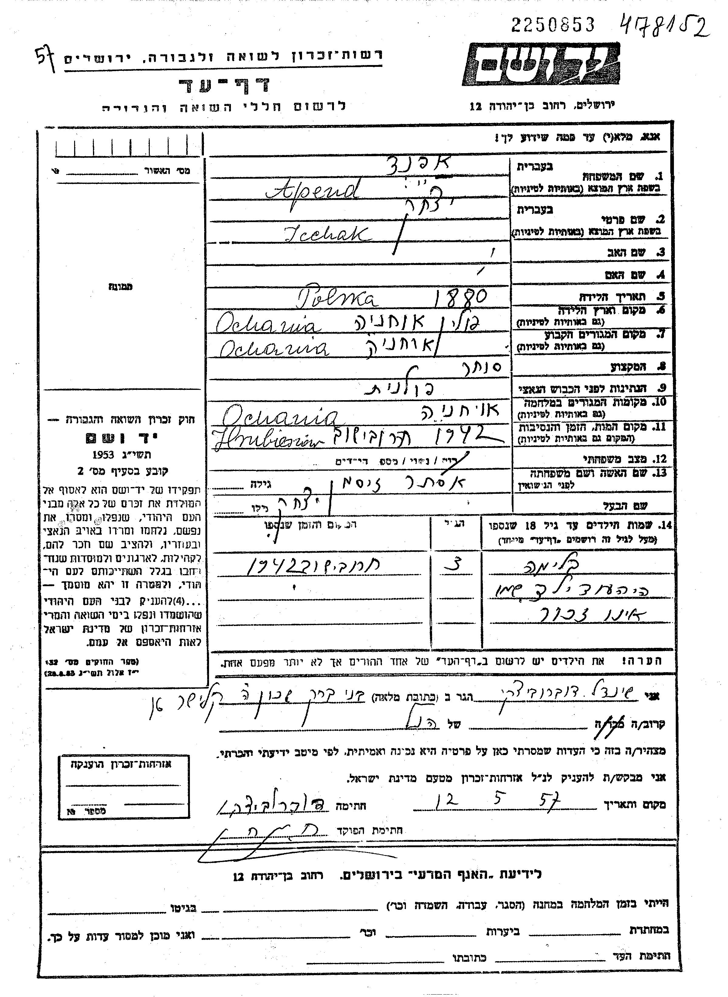 Yad Vashem - Pages of Testimony Names Memorial Collection