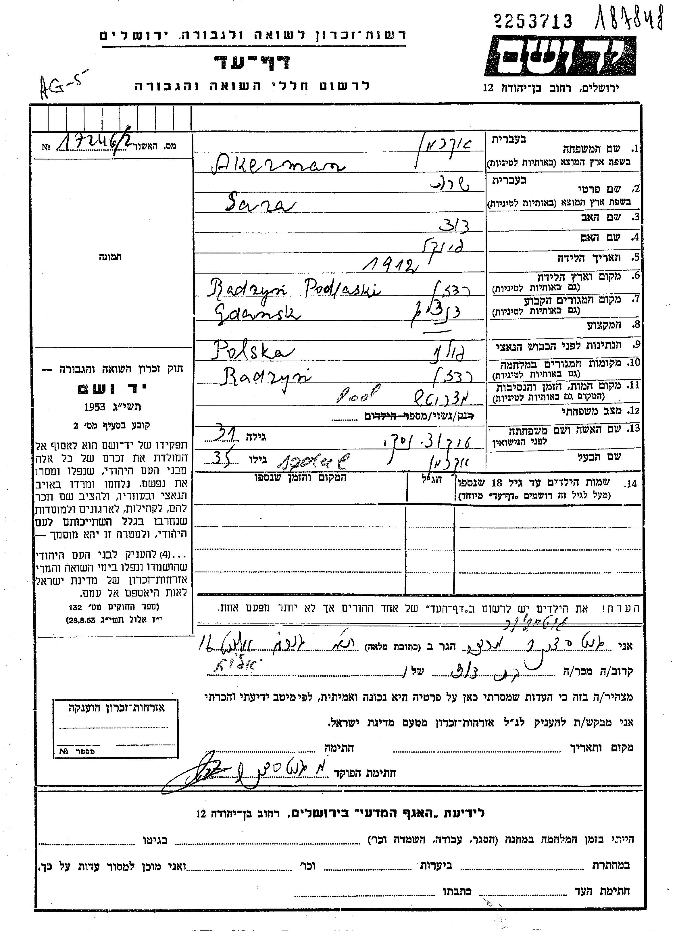 Yad Vashem - Pages of Testimony Names Memorial Collection