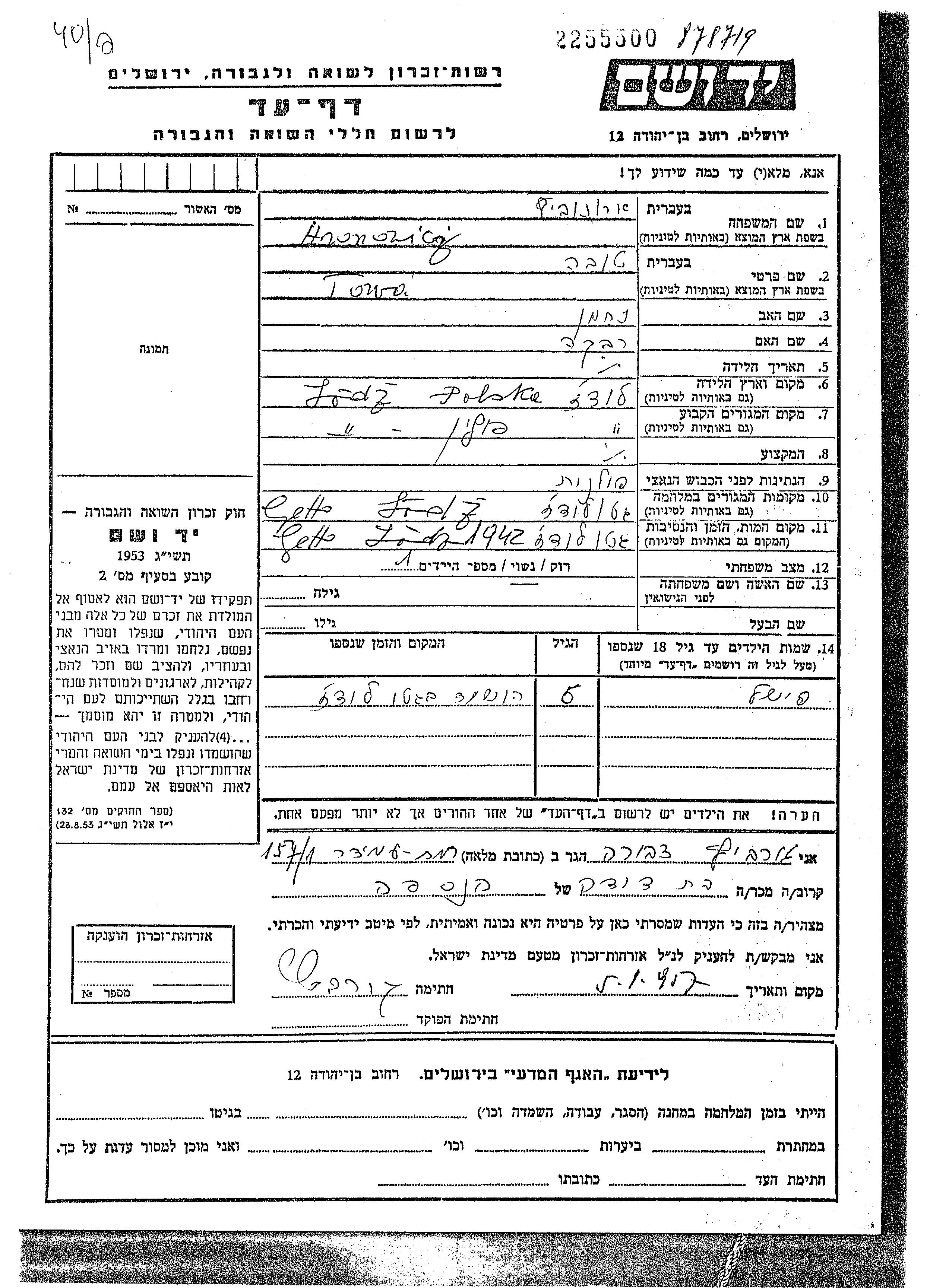 Yad Vashem - Pages of Testimony Names Memorial Collection