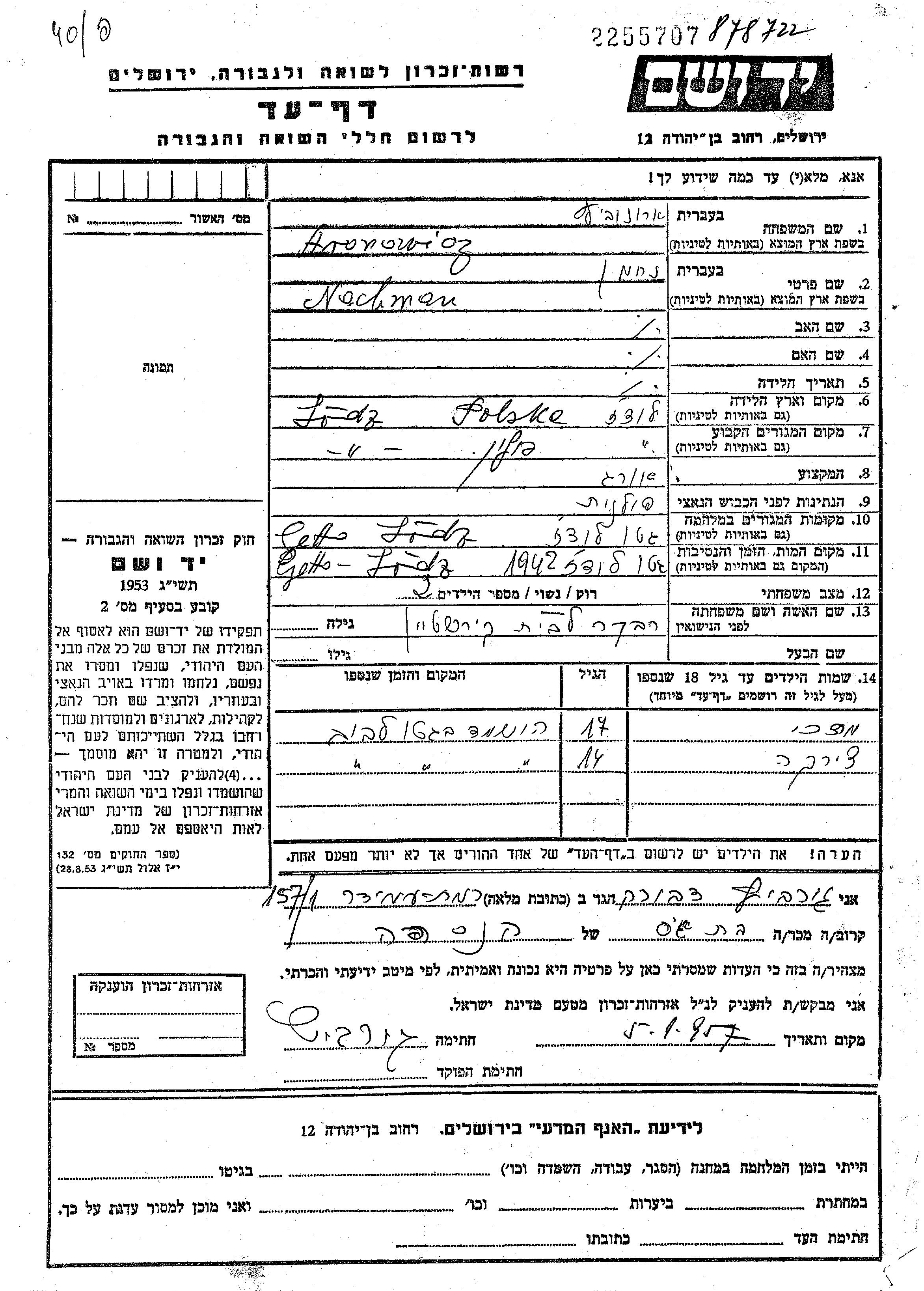 Nachman a été assassiné pendant la Shoah. Lieu de la mort: Lodz, Pologne en 1942.