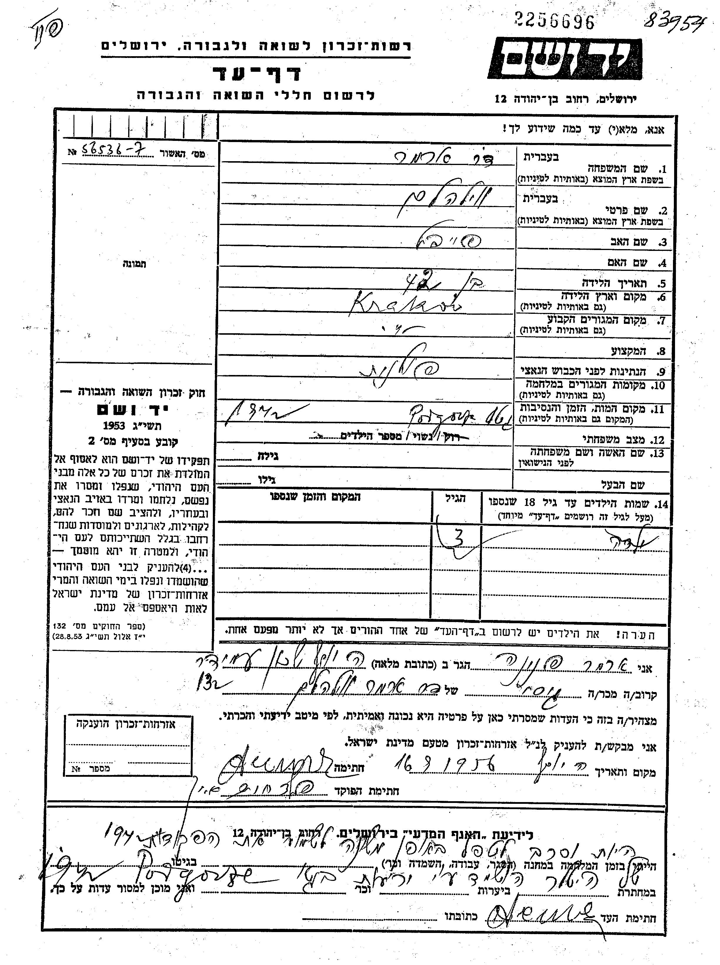 Yad Vashem - Pages of Testimony Names Memorial Collection