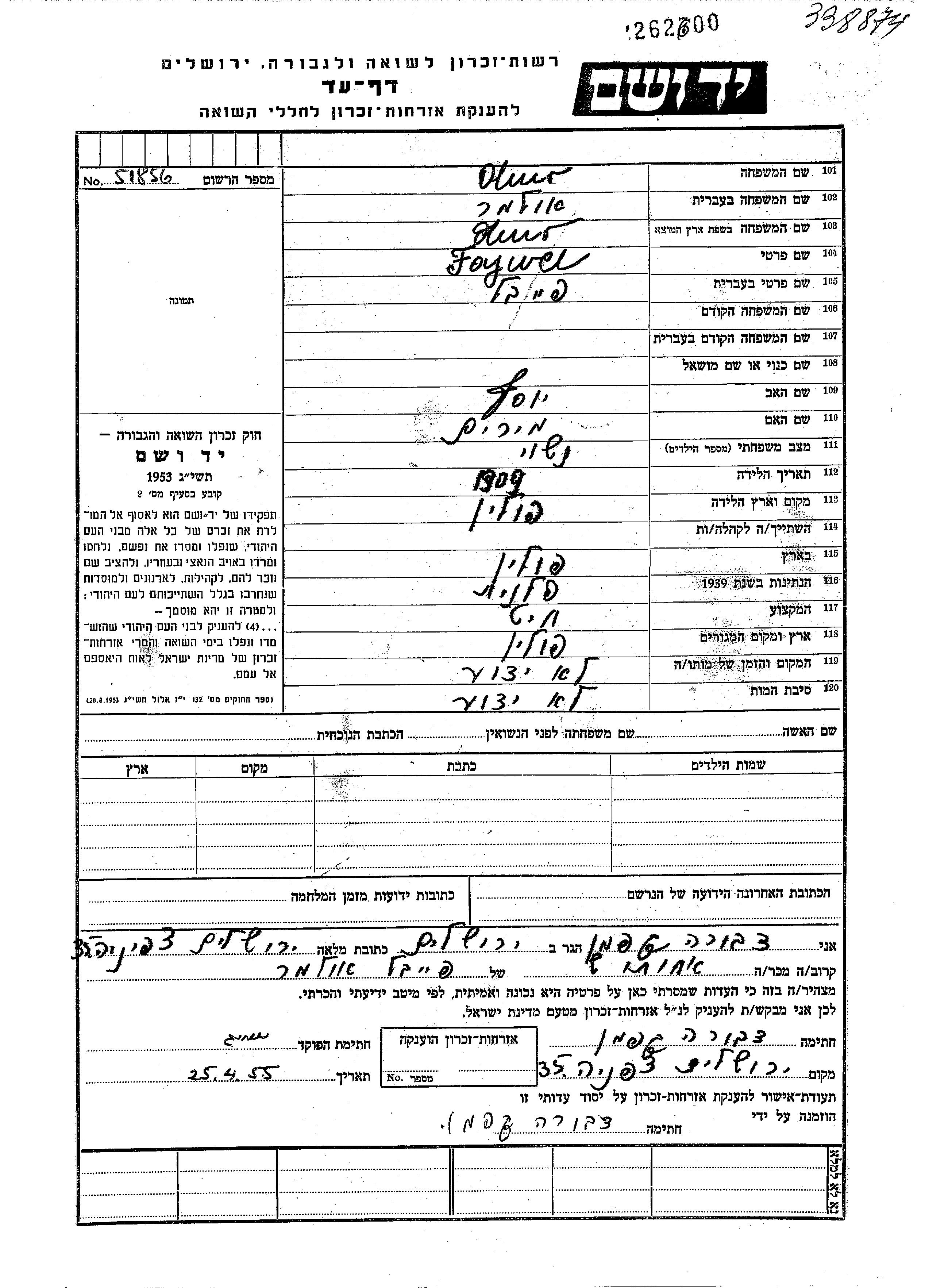 Yad Vashem - Pages of Testimony Names Memorial Collection