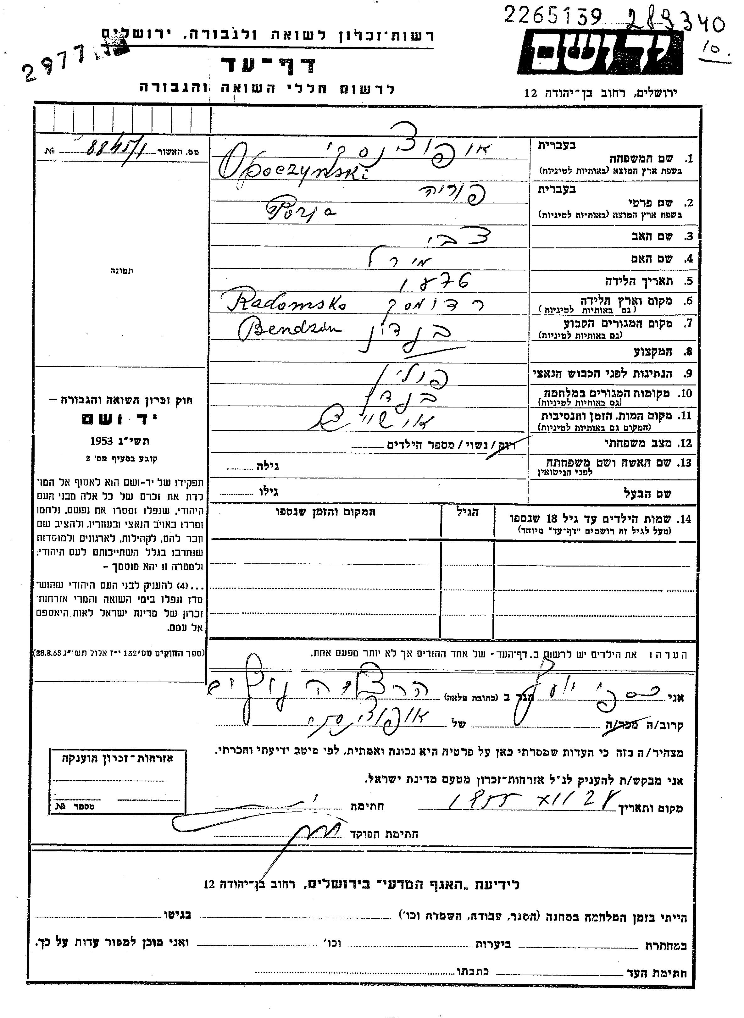 Yad Vashem - Pages of Testimony Names Memorial Collection