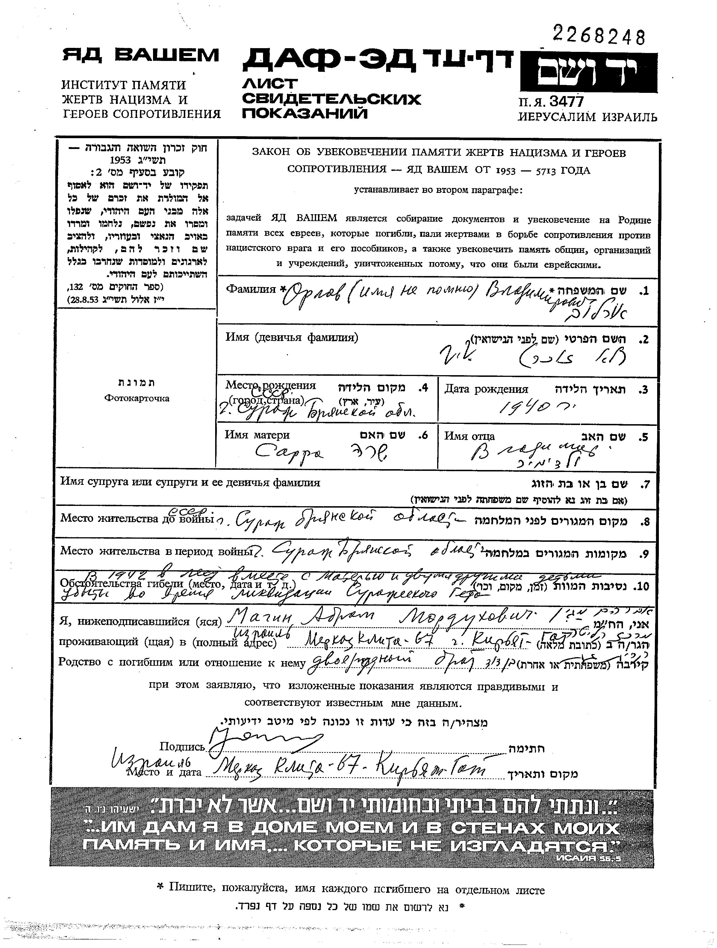 Yad Vashem - Pages of Testimony Names Memorial Collection