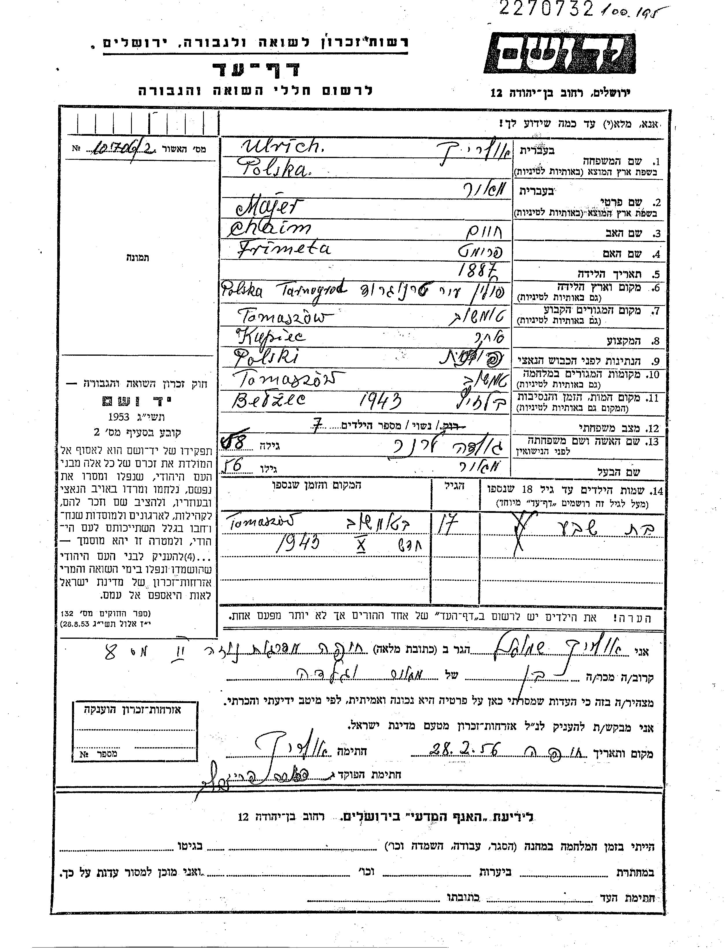 Recherche par date de la mort pendant la période de la Shoah: 1933-1945. Sélectionnez 'Exact'; dans la liste pour rechercher l'année exacte, ou sélectionner '+/- 2 ans'; ou '+/- 5 ans
