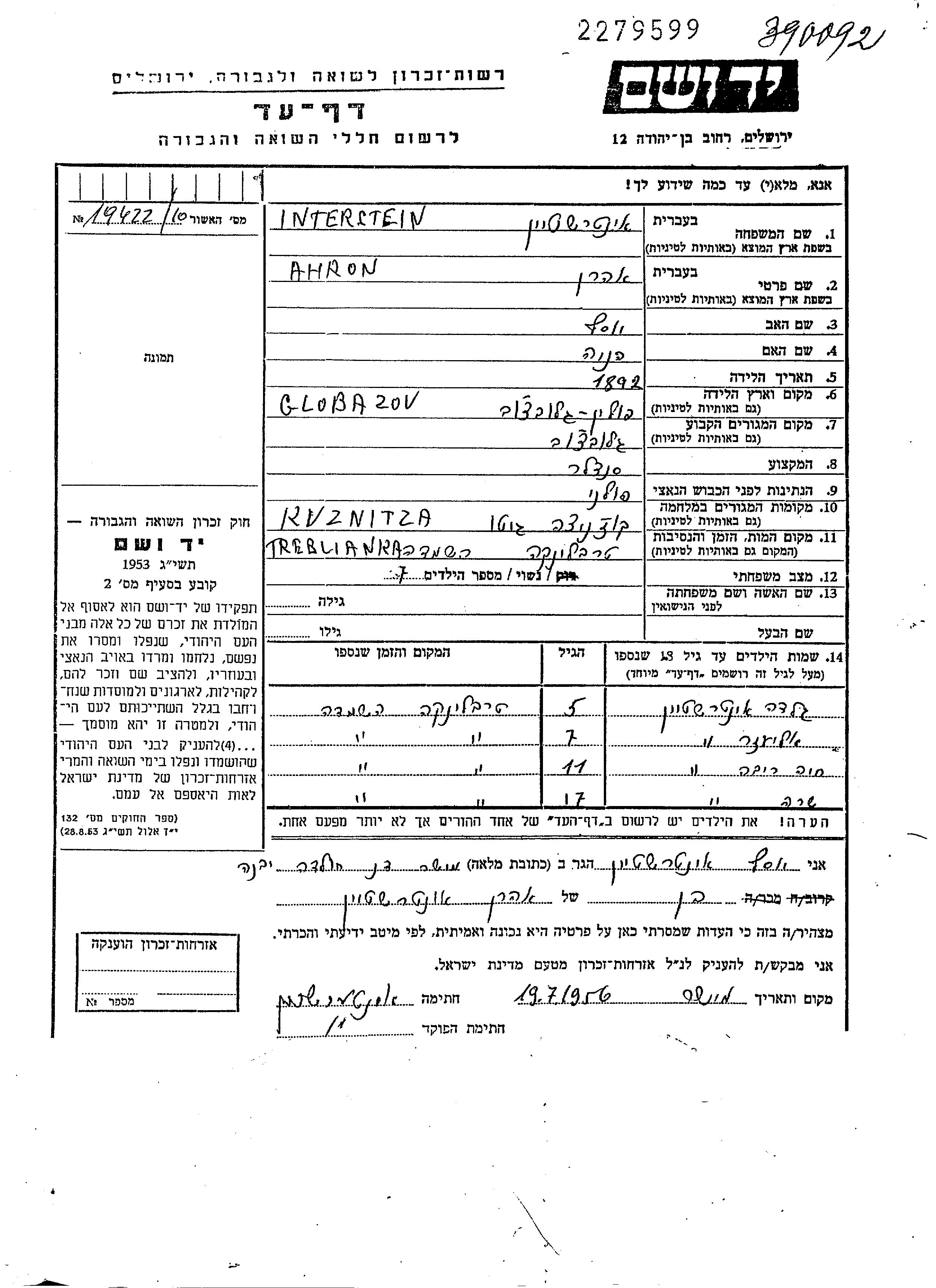 Yad Vashem - Pages of Testimony Names Memorial Collection