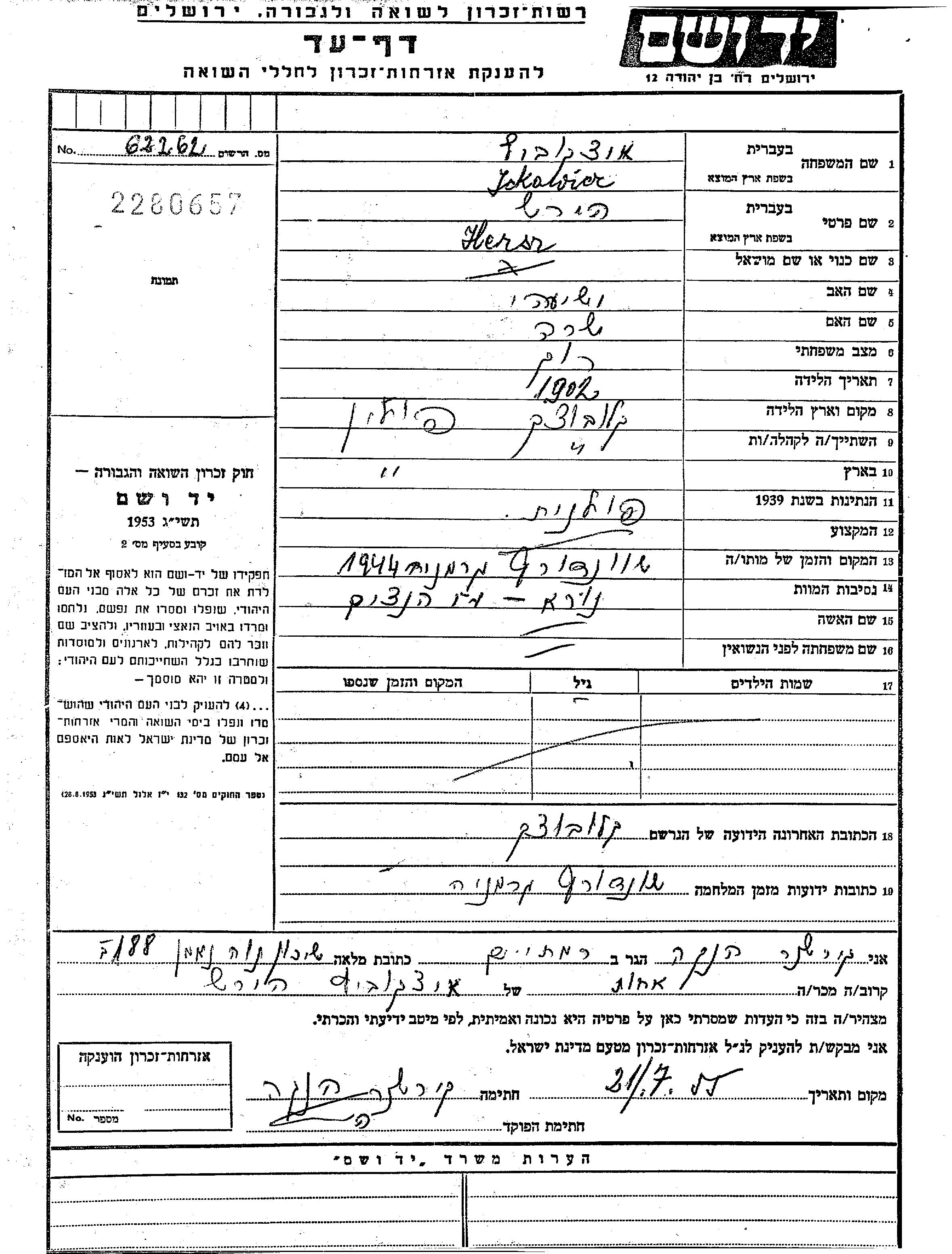 Yad Vashem - Pages of Testimony Names Memorial Collection