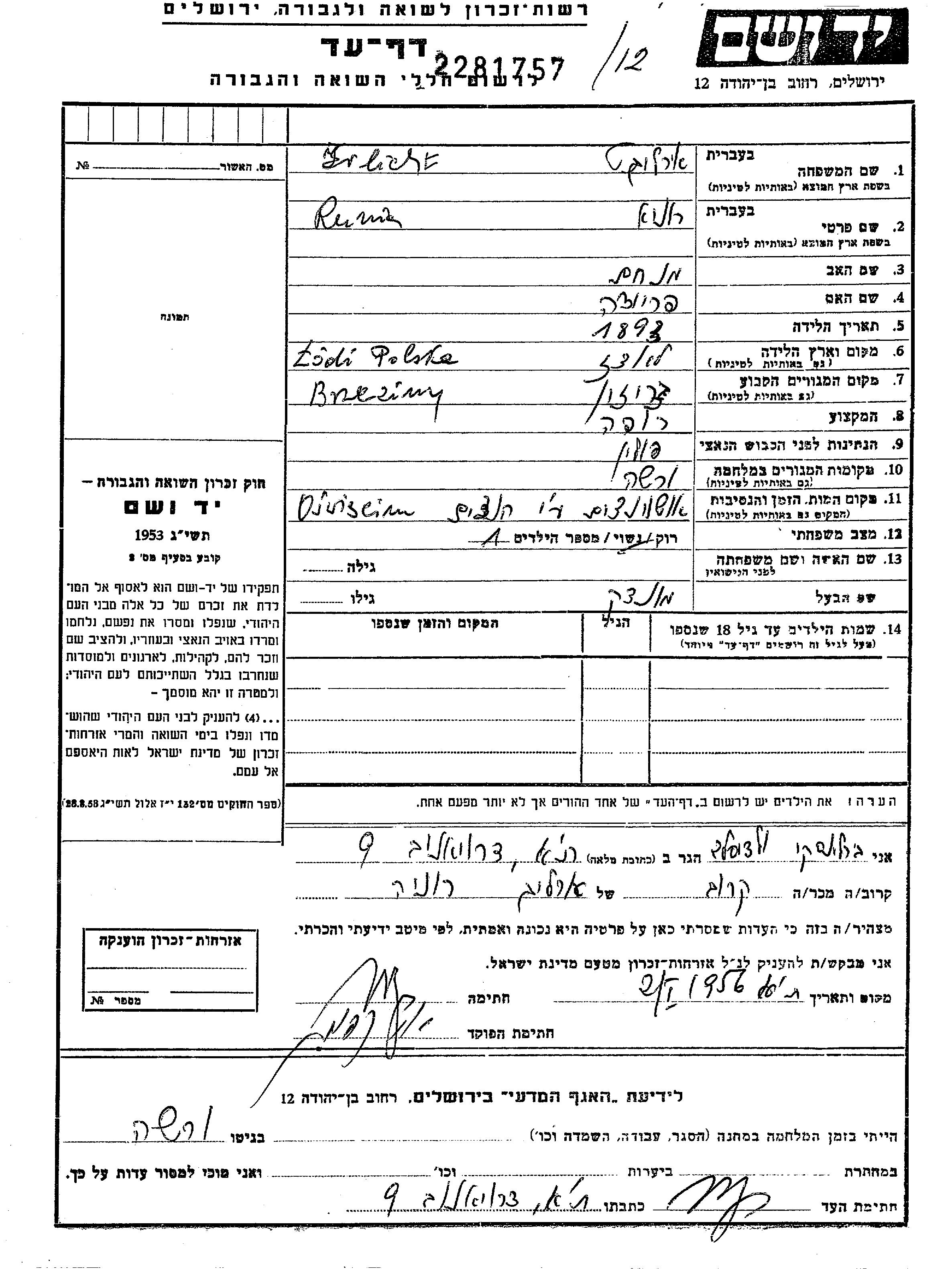 Yad Vashem - Pages of Testimony Names Memorial Collection