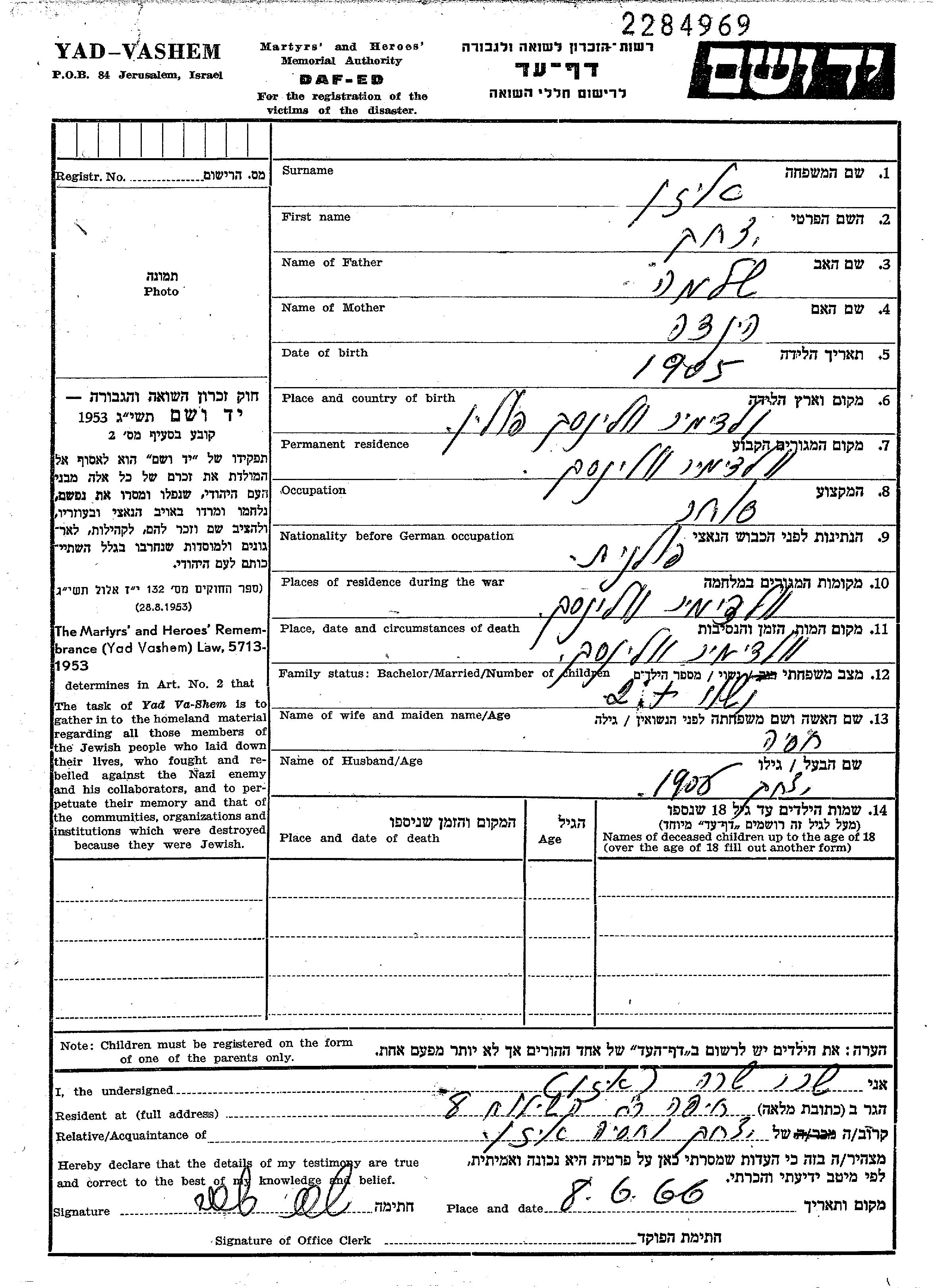 Yad Vashem - Pages of Testimony Names Memorial Collection